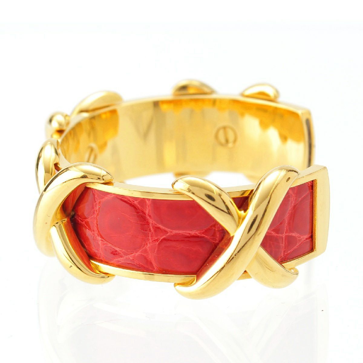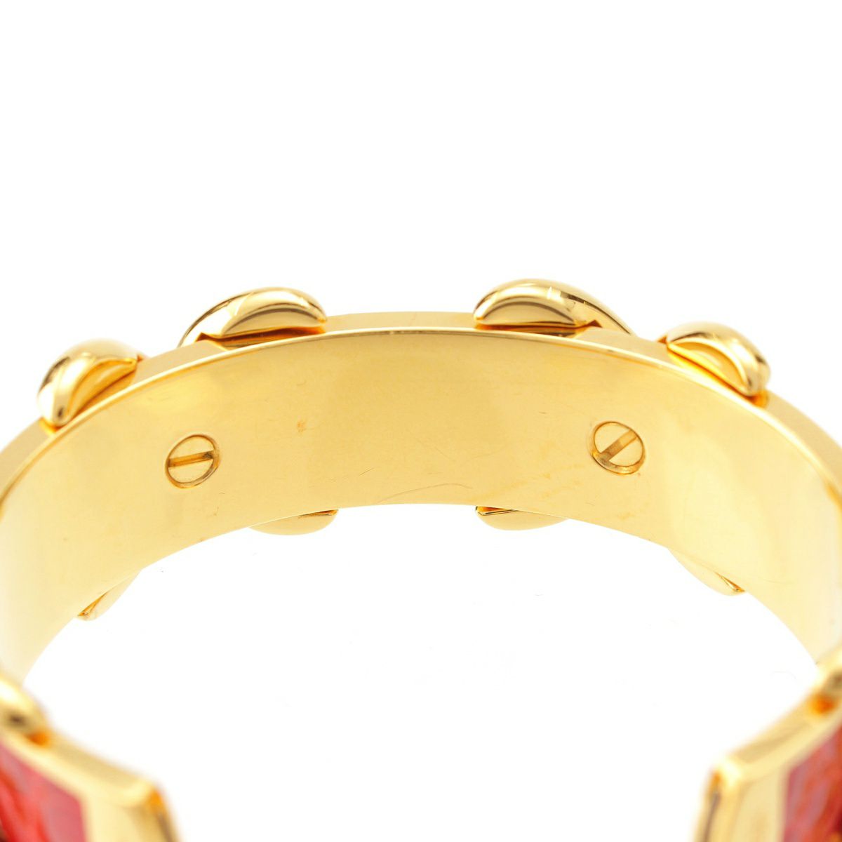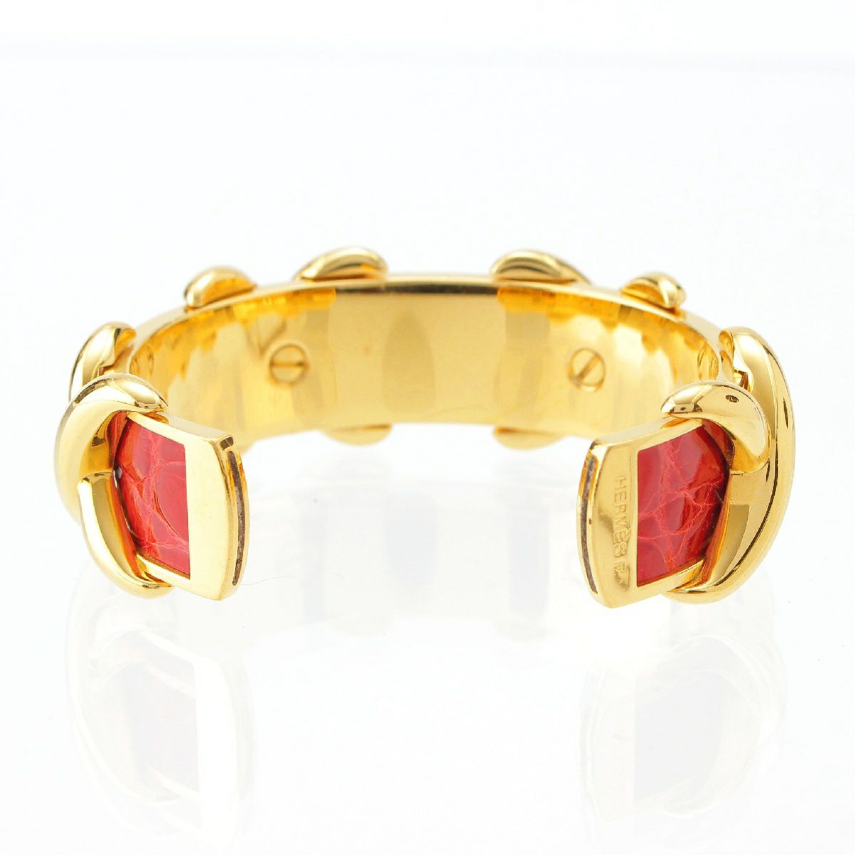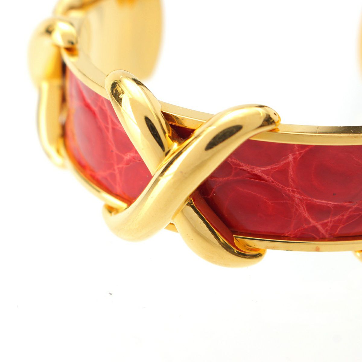 エルメス クロコダイル レザー クロス バングル ブレスレット アクセサリー ゴールド レッド