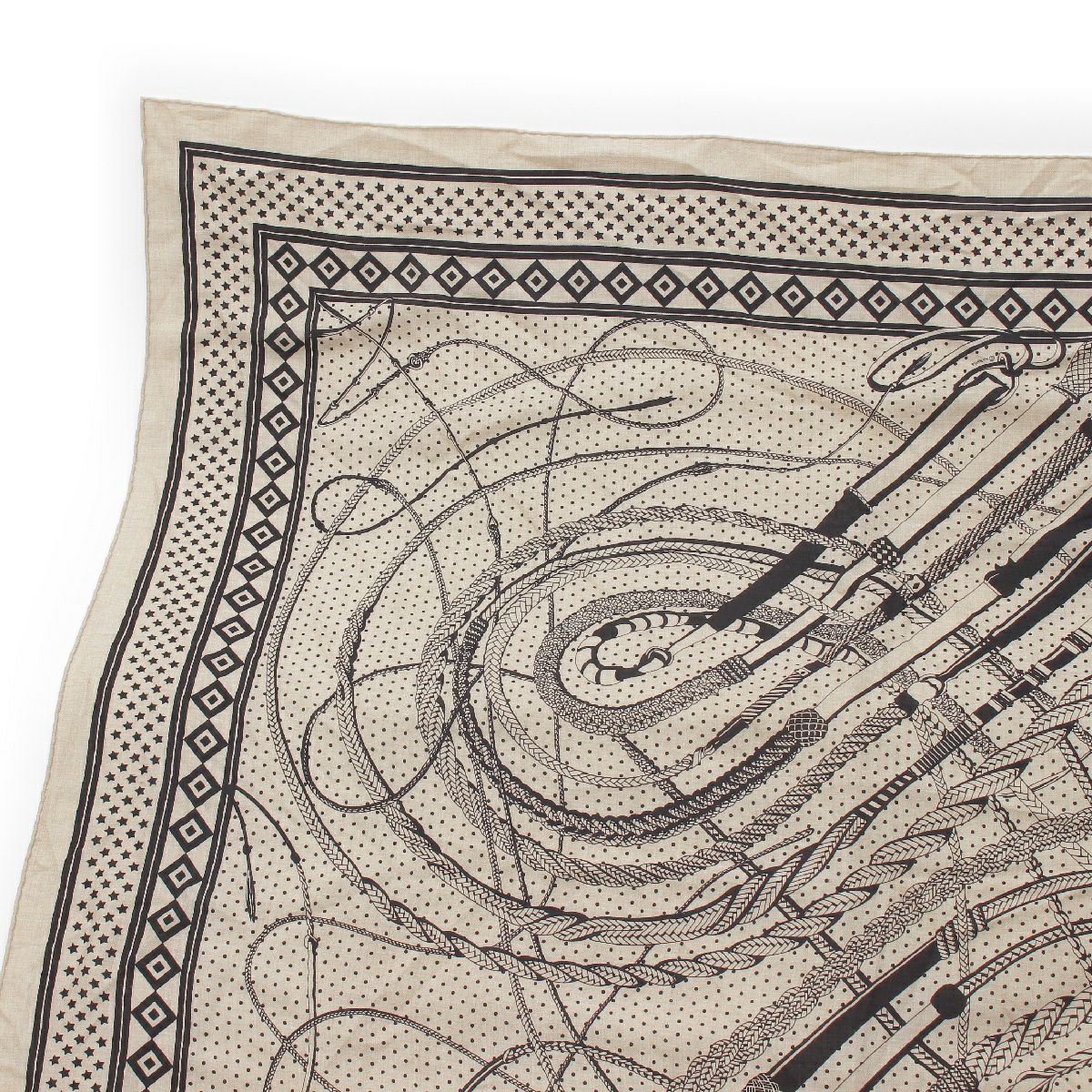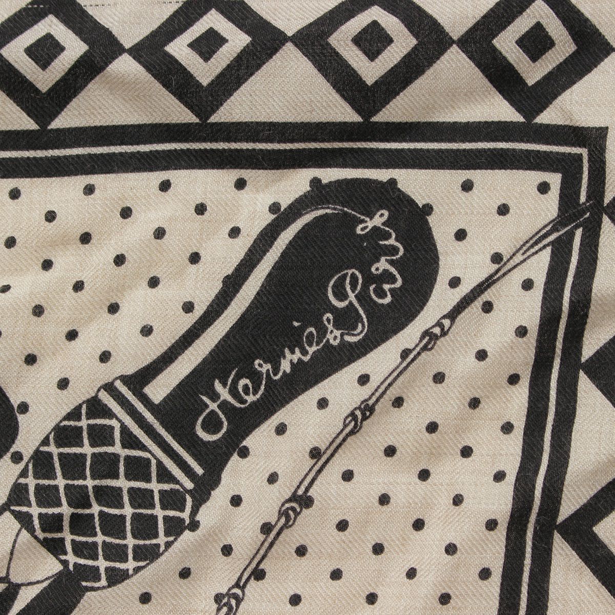 エルメス カレジェアン140 カシミヤ シルク Fouets et Badines Bandana 鞭とグリップ ストール 大判スカーフ ベージュ ブラック マルチカラー