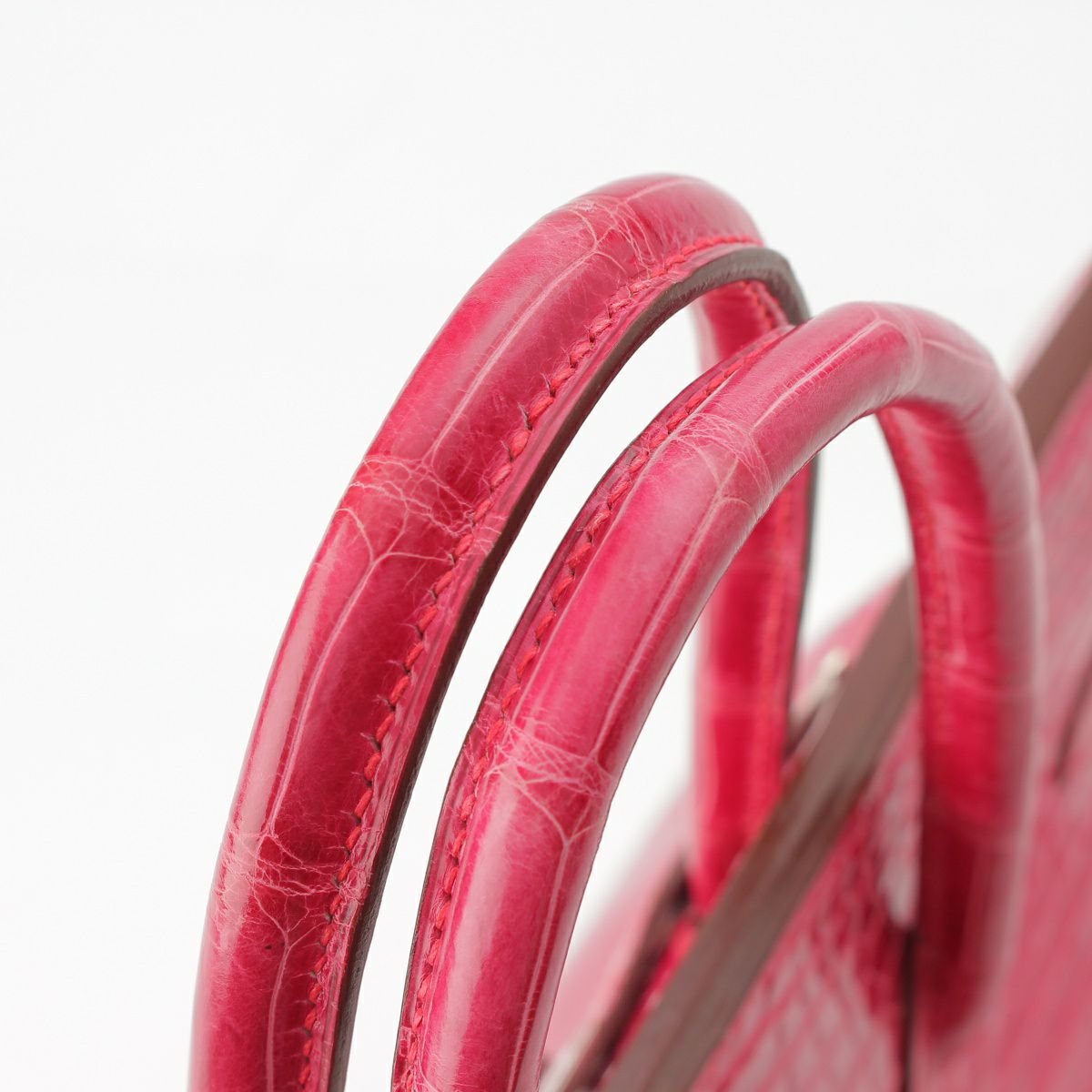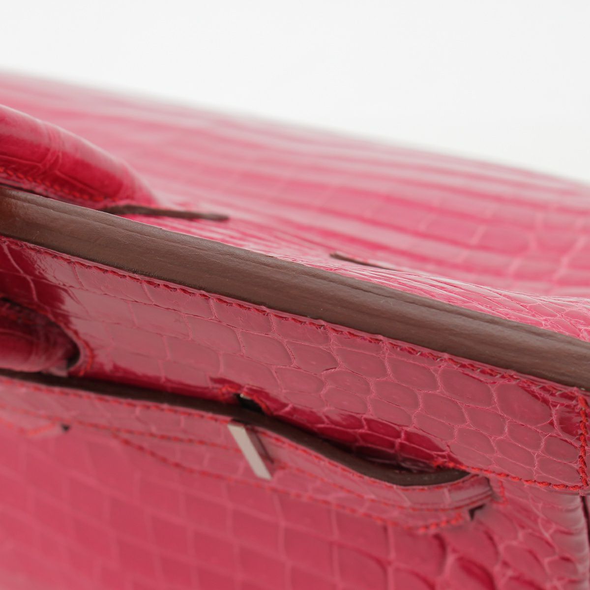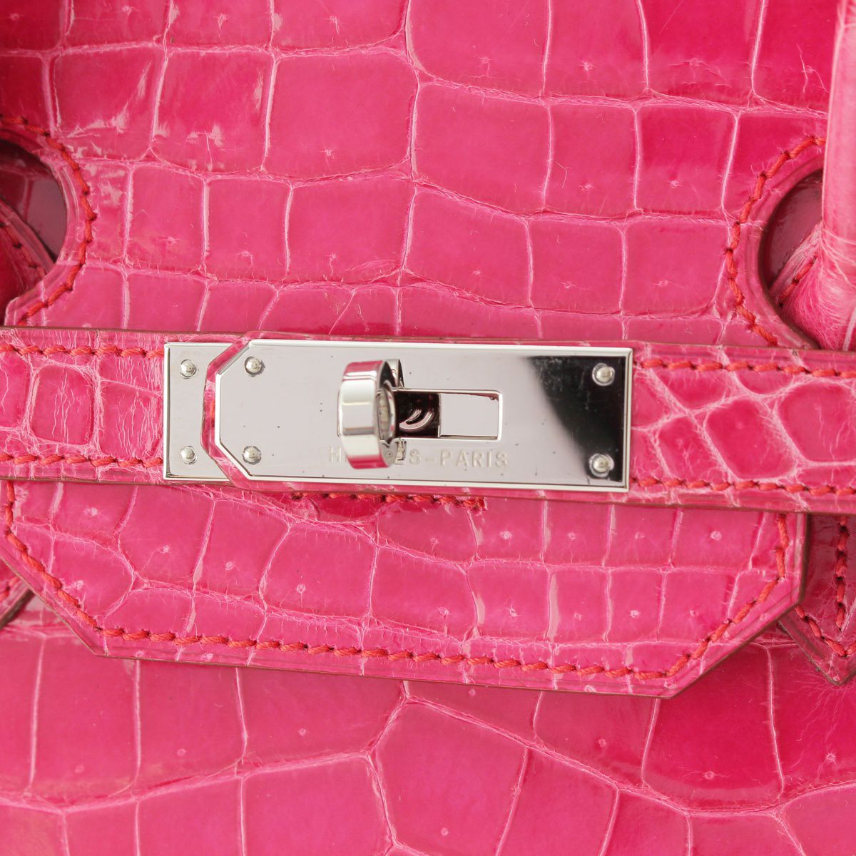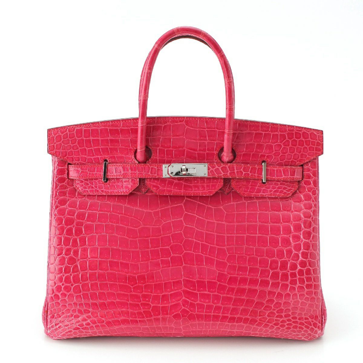 エルメス □H刻印 バーキン35 ポロサス クロコ ハンドバッグ シルバー金具 フューシャピンク