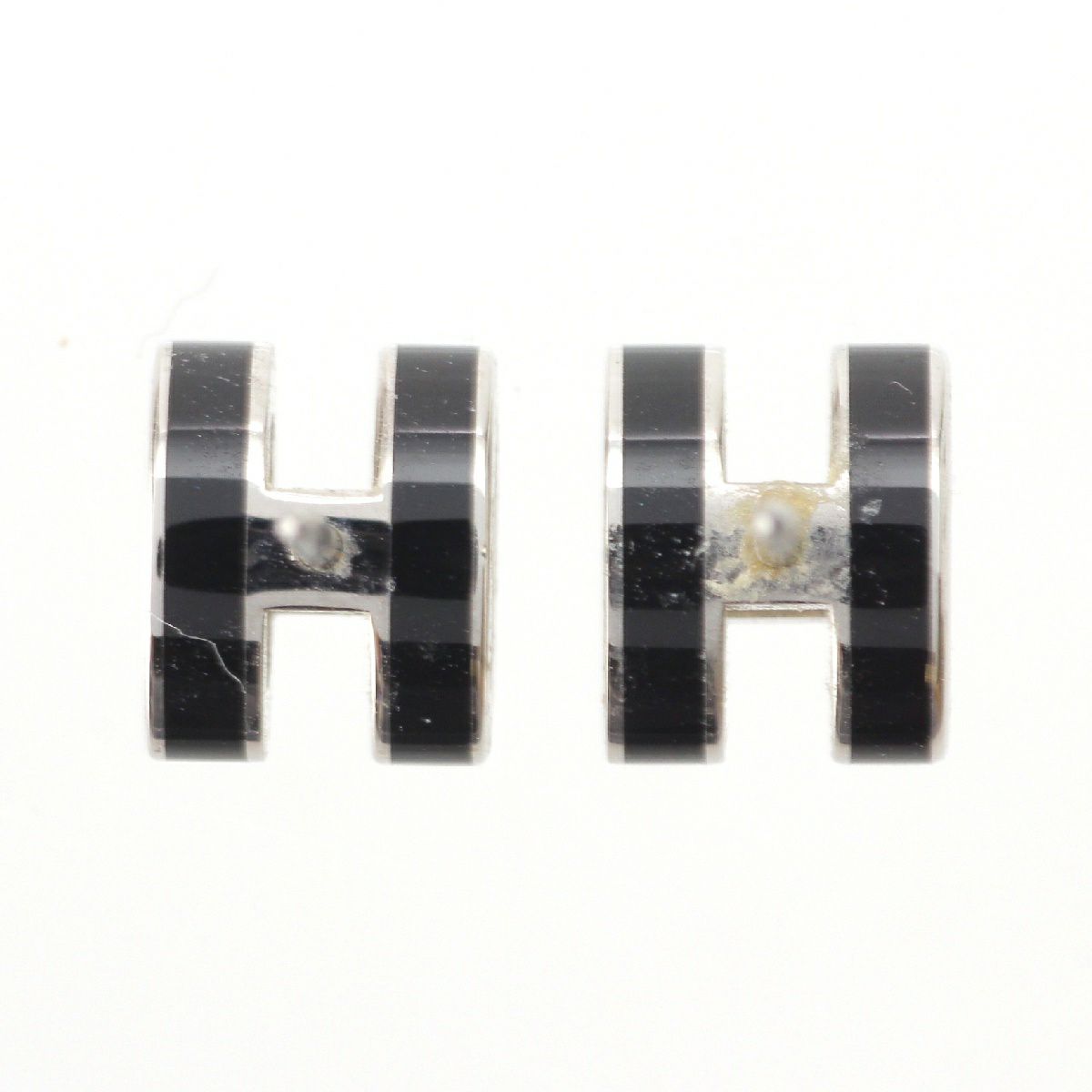 エルメス ポップアッシュ H ミニ ピアス イヤリング アクセサリー ノワール ブラック シルバー