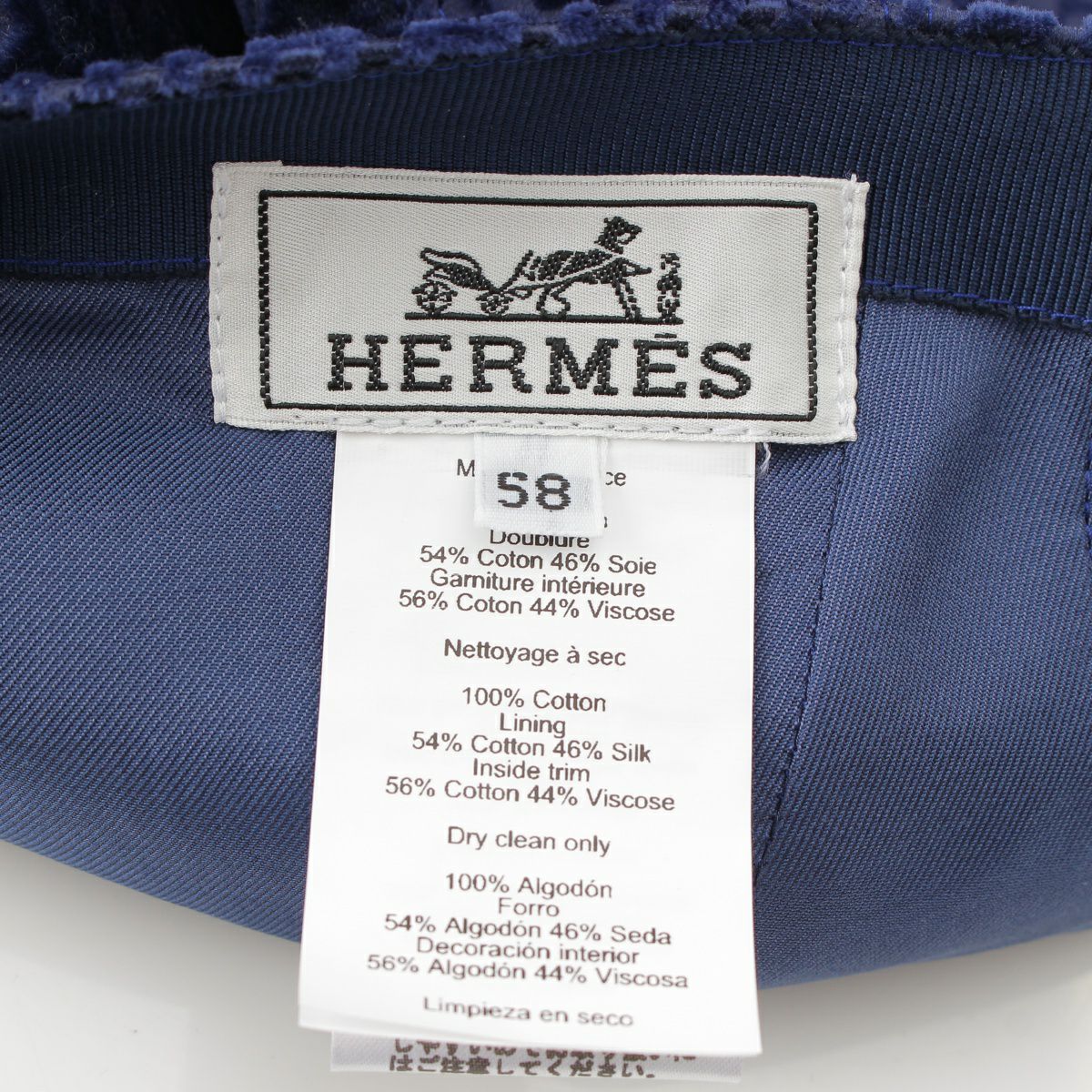エルメス デイヴィス ヴェルヴェット コットン キャップ 帽子 ブルーフォンセ 58