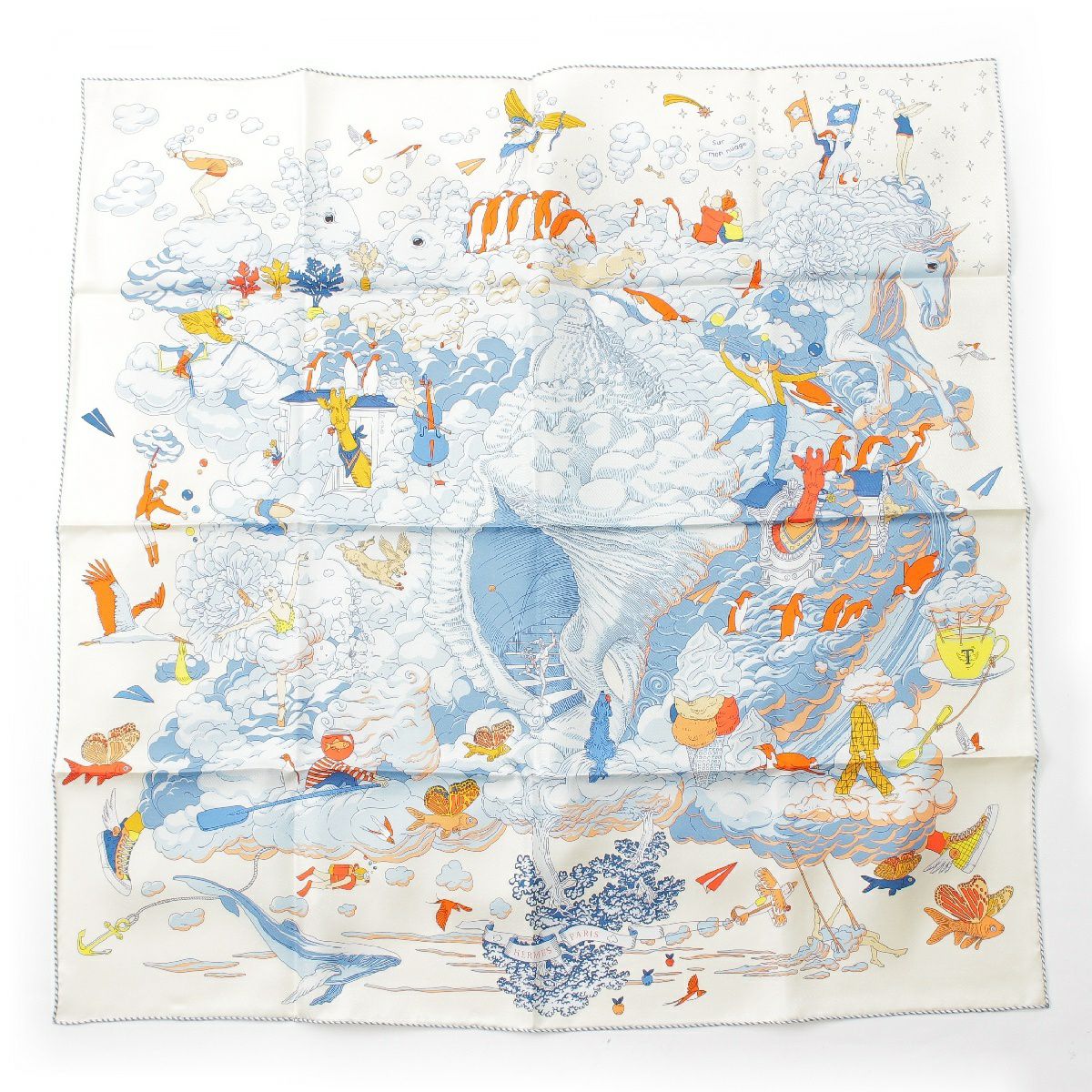 エルメス カレ90 SUR MON NUAGE 私の雲 シルク スカーフ ストール ホワイト