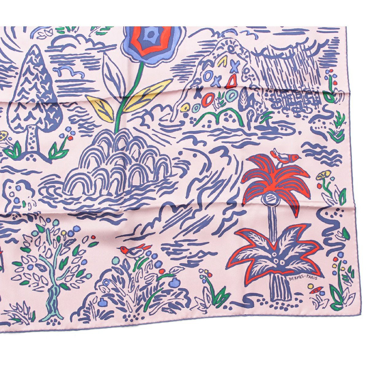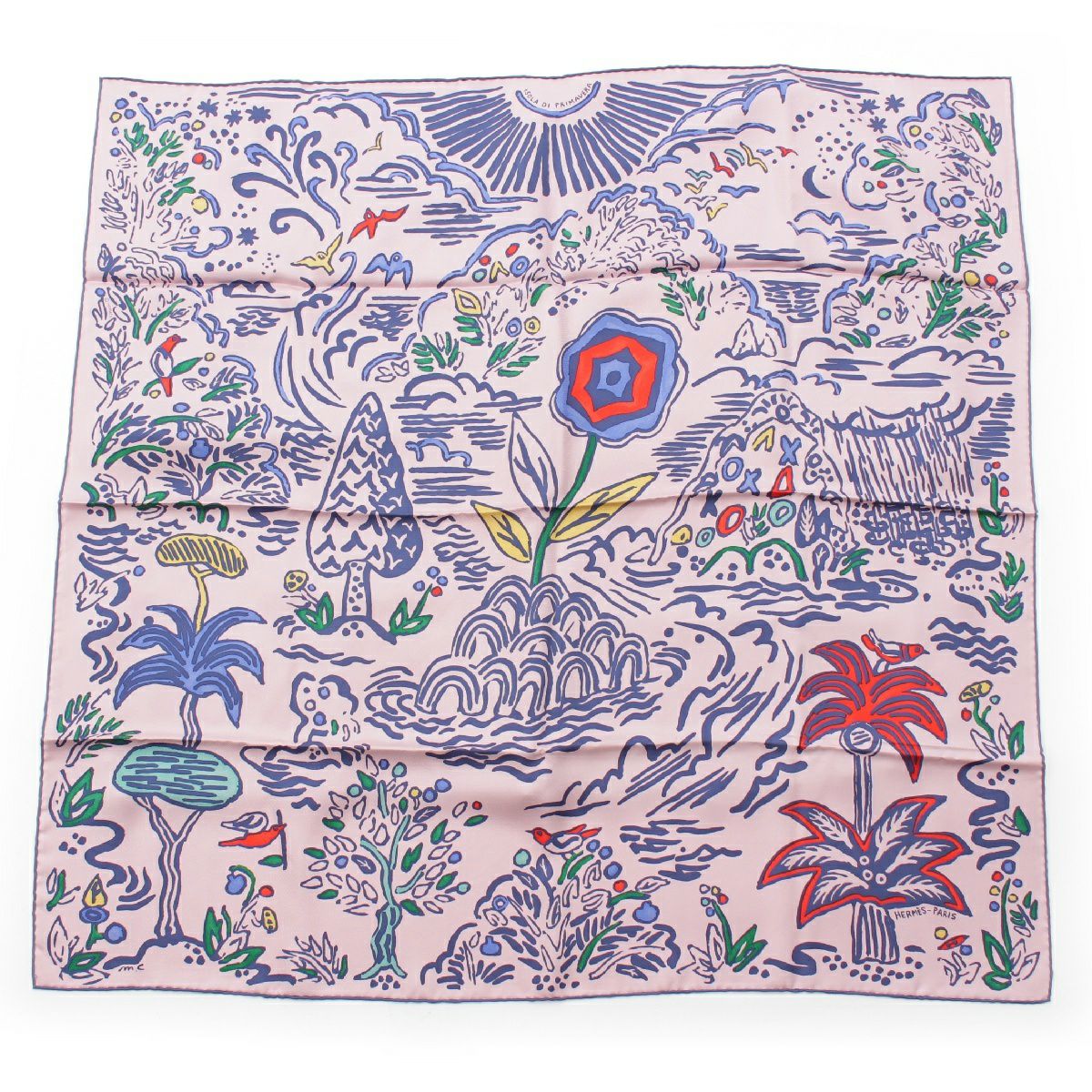 エルメス カレ90 ISOLA DI PRIMAVERA 春の島 シルク スカーフ ストール ピンク