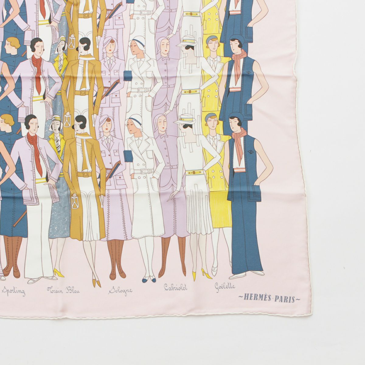 エルメス カレ70 シルク LES SPORTI VES スポーツルック スカーフ ピンク系マルチカラー