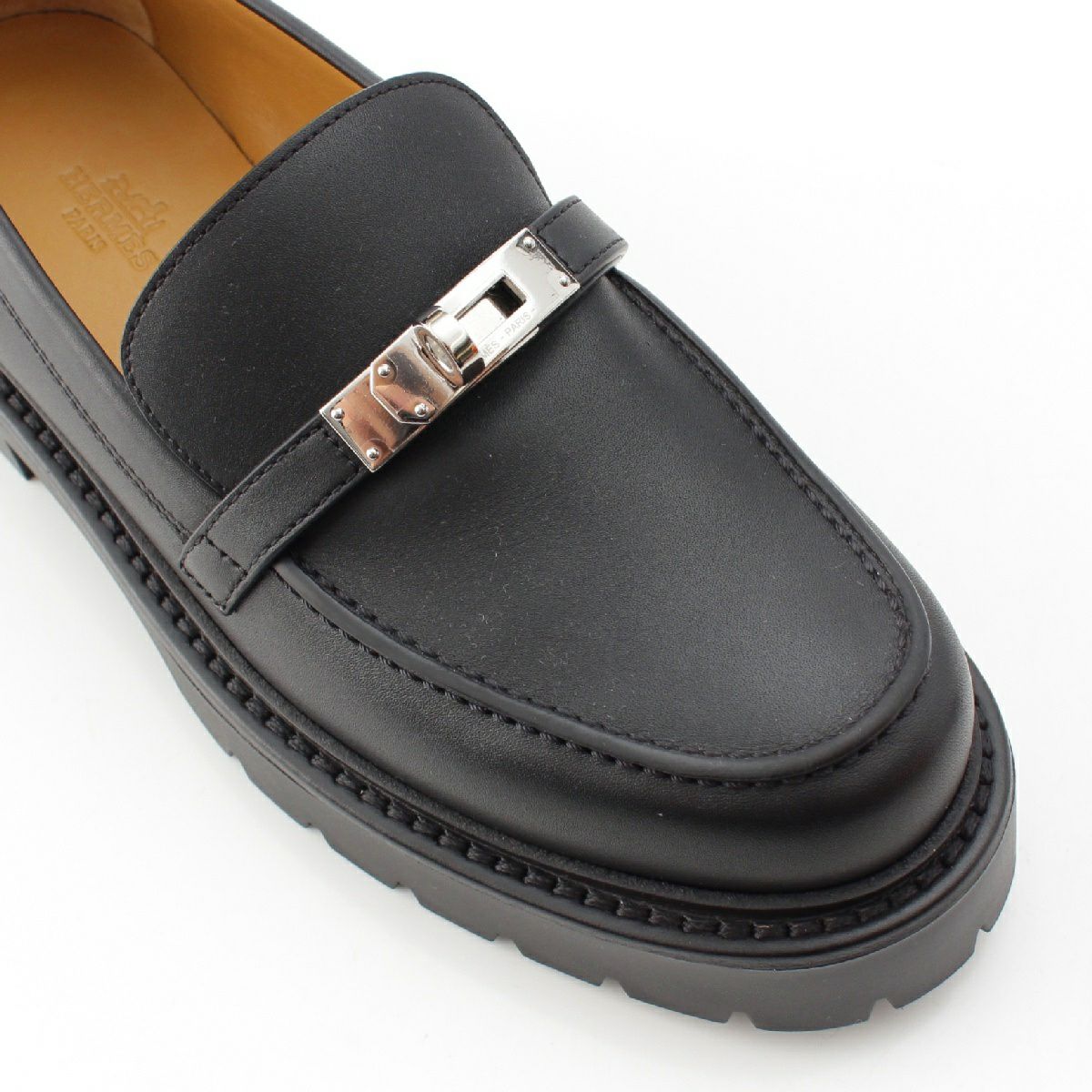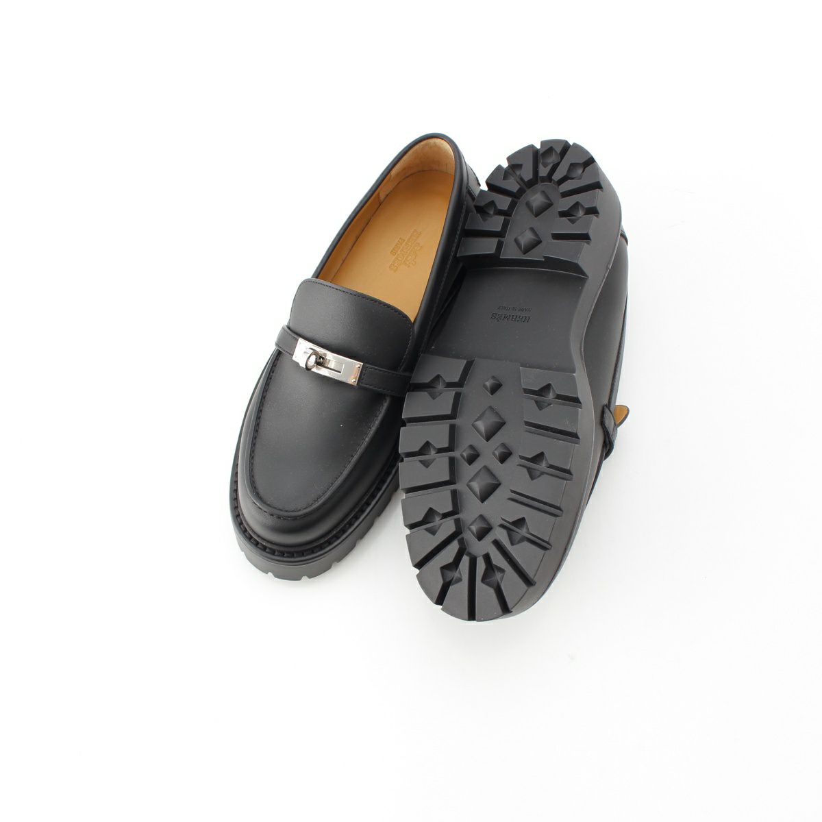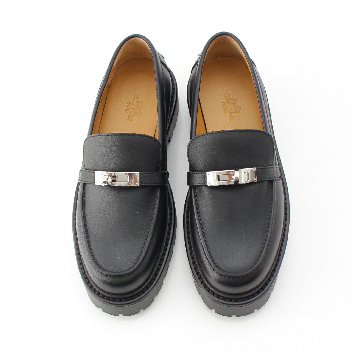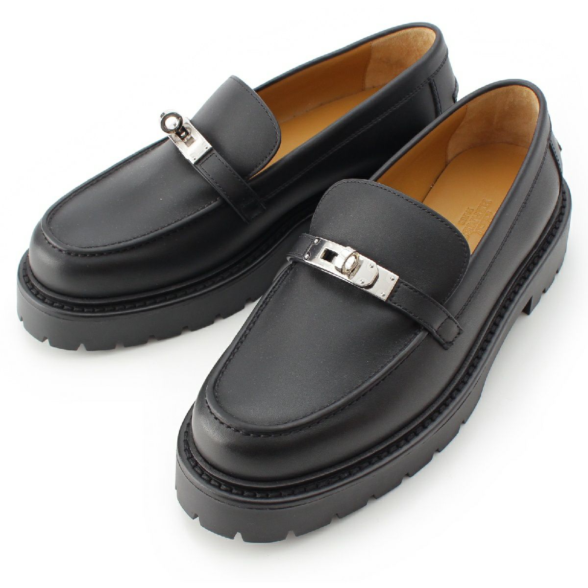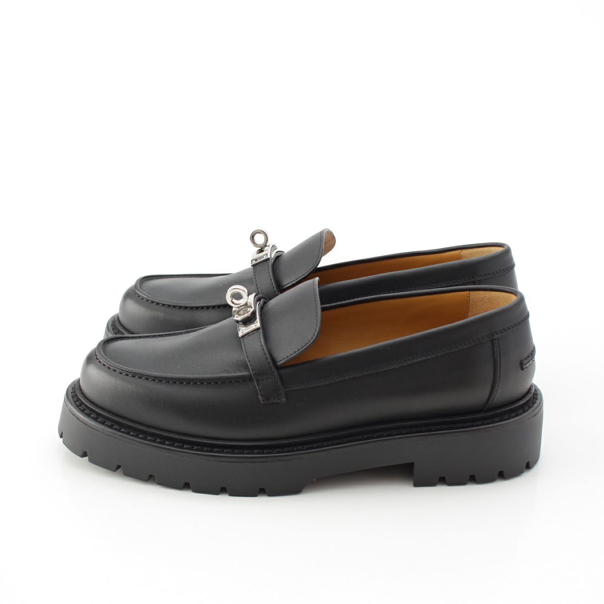 エルメス レザー アイコン ケリーバックル シルバー金具 ローファー モカシン H242101Z ブラック 38