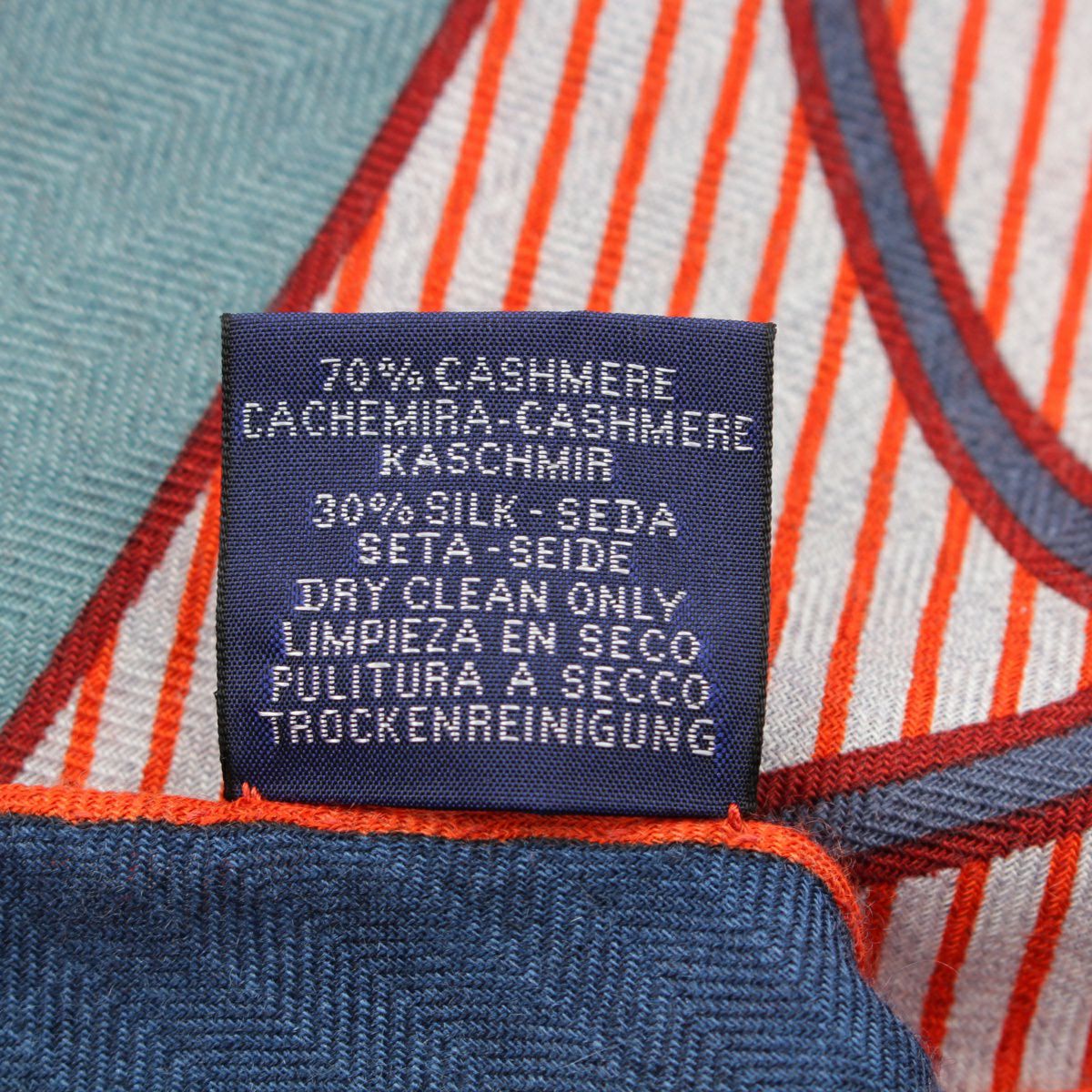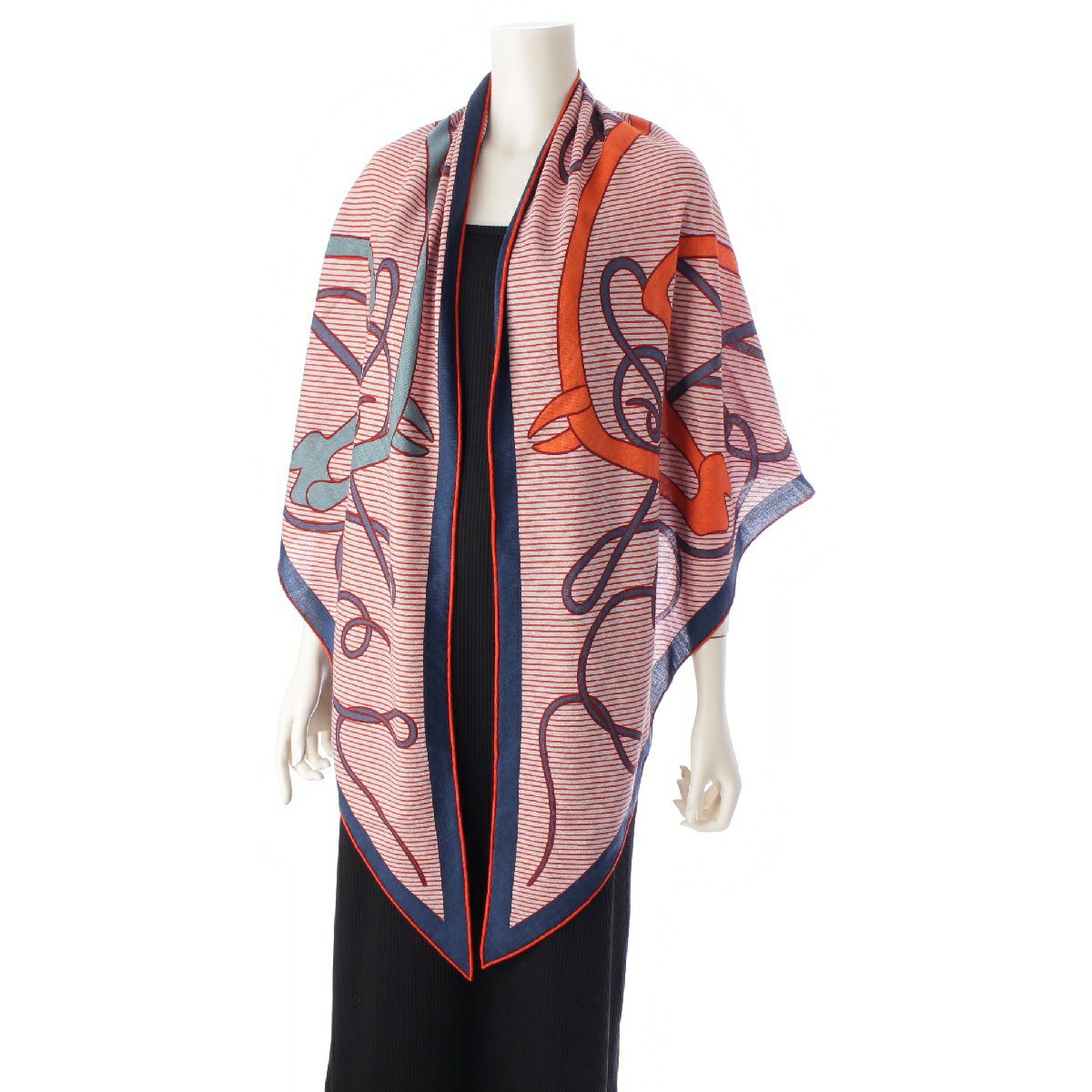 エルメス 24年 トライアングルジェアン Coup de Fouet Chemise 鞭 シュミーズ カシミヤ シルク 大判 ストール ショール スカーフ H364172S ネイビー オレンジ