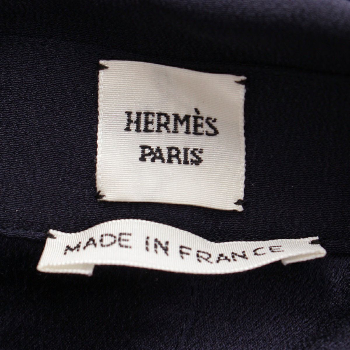 エルメス 23SS シルク ポケット刺繍 シェーヌダンクル シャツ ワンピース ドレス ネイビー 34