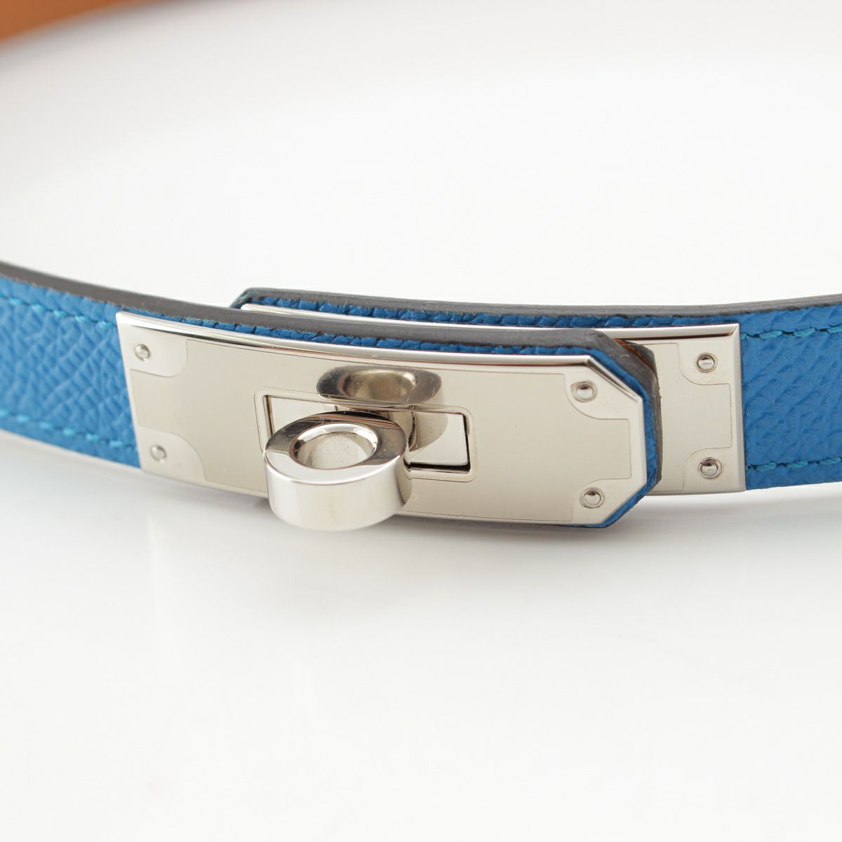 エルメス A刻印 ケリー18 エプソン ベルト シルバー金具 ブルー ブラウン