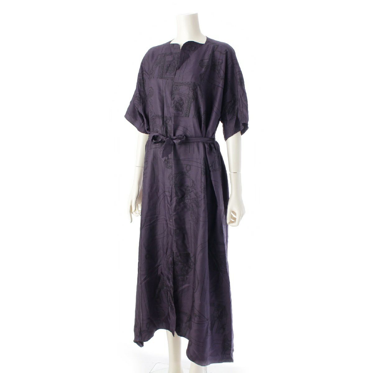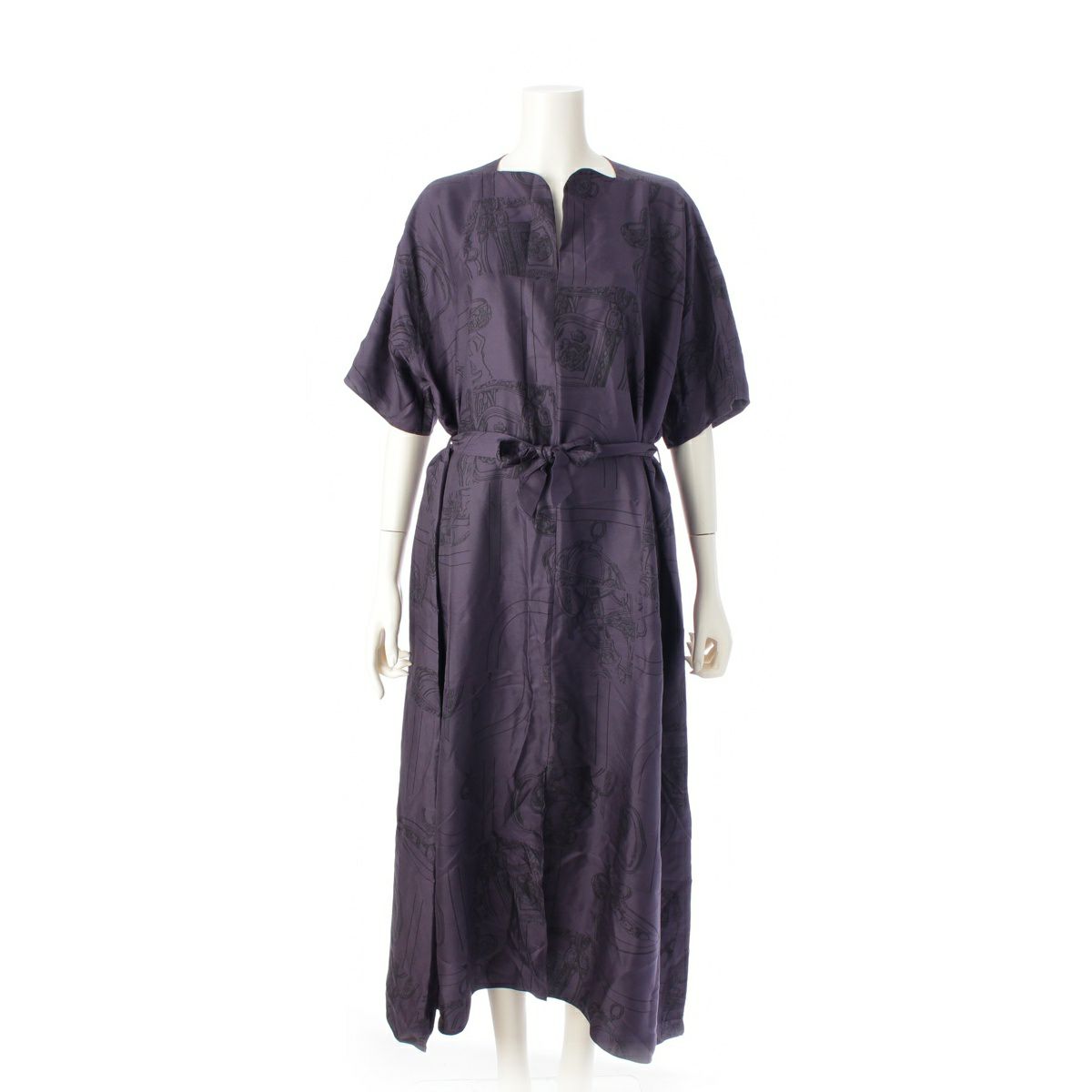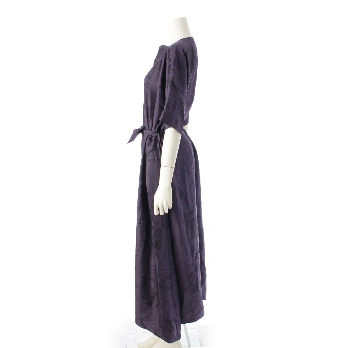 エルメス シルク Brides de Gala 総柄 ベルト ワンピース ドレス 4H0572DL パープル 38
