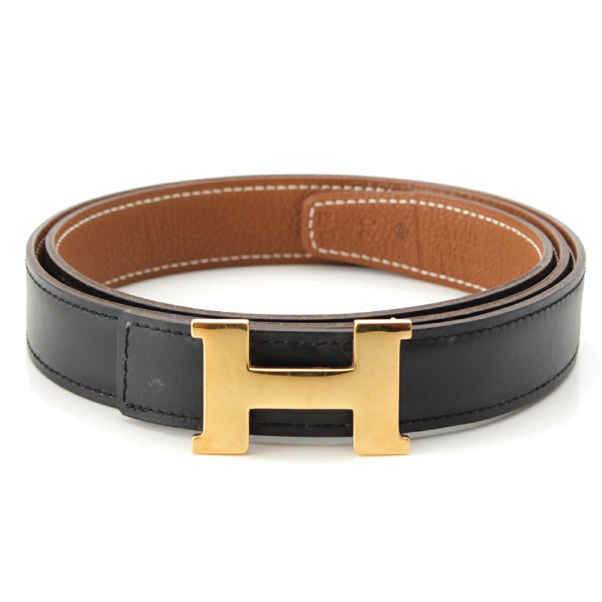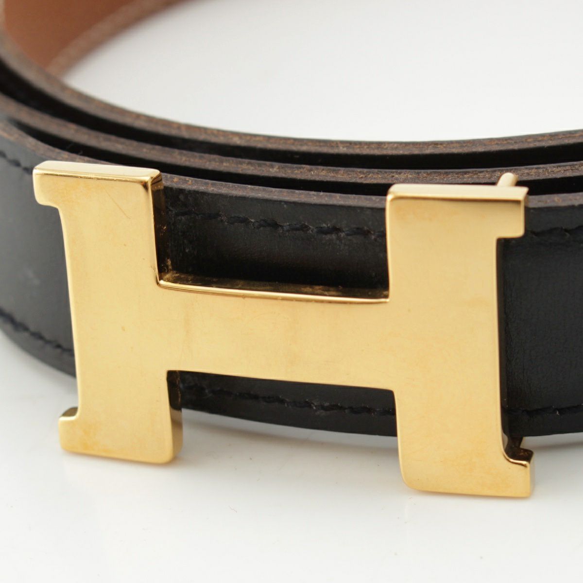 エルメス ミニコンスタンス ボックスカーフ H金具 リバーシブル ベルト ブラック 90