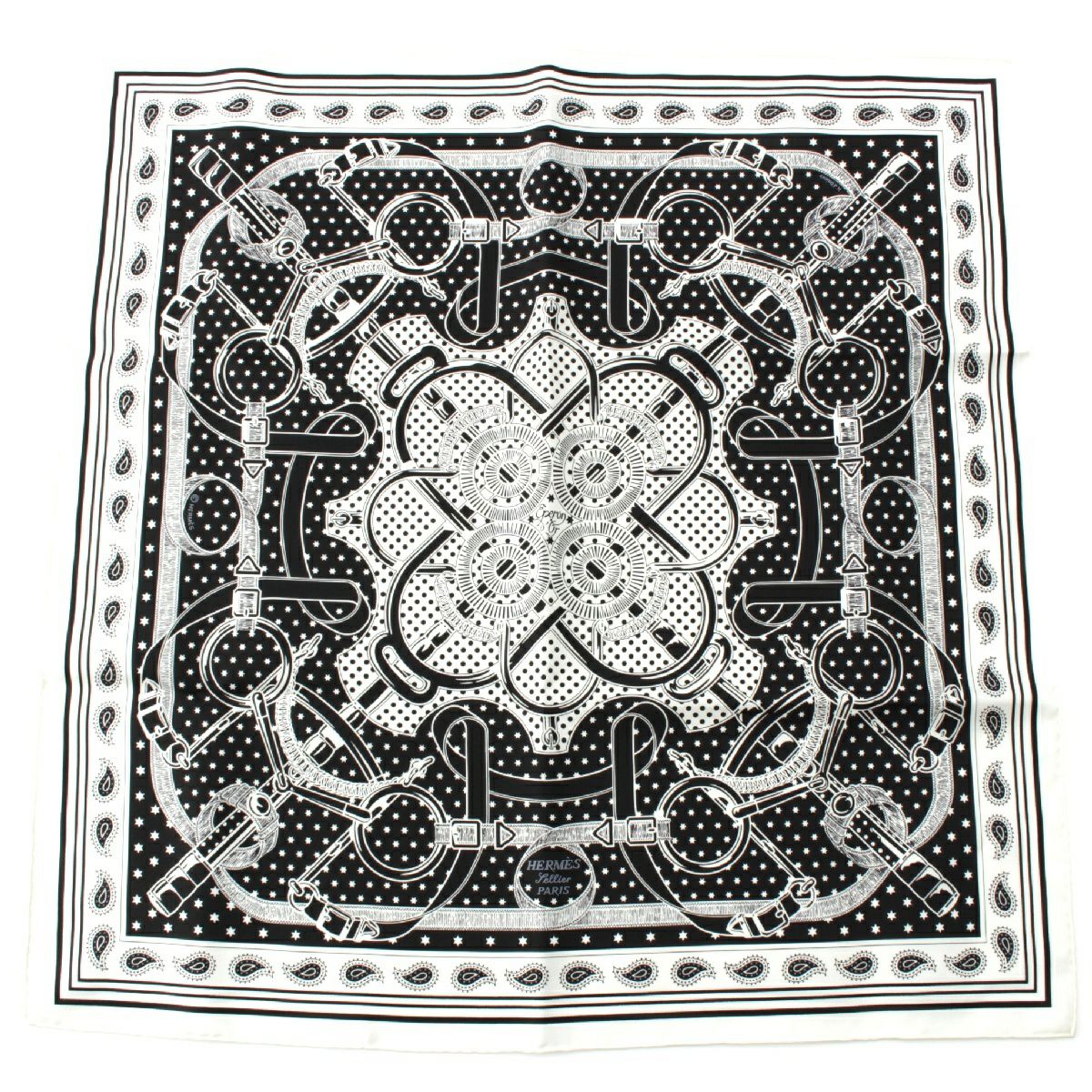 エルメス カレ55 シルク エプロンドール スカーフ バンダナ ハンカチ ブラック