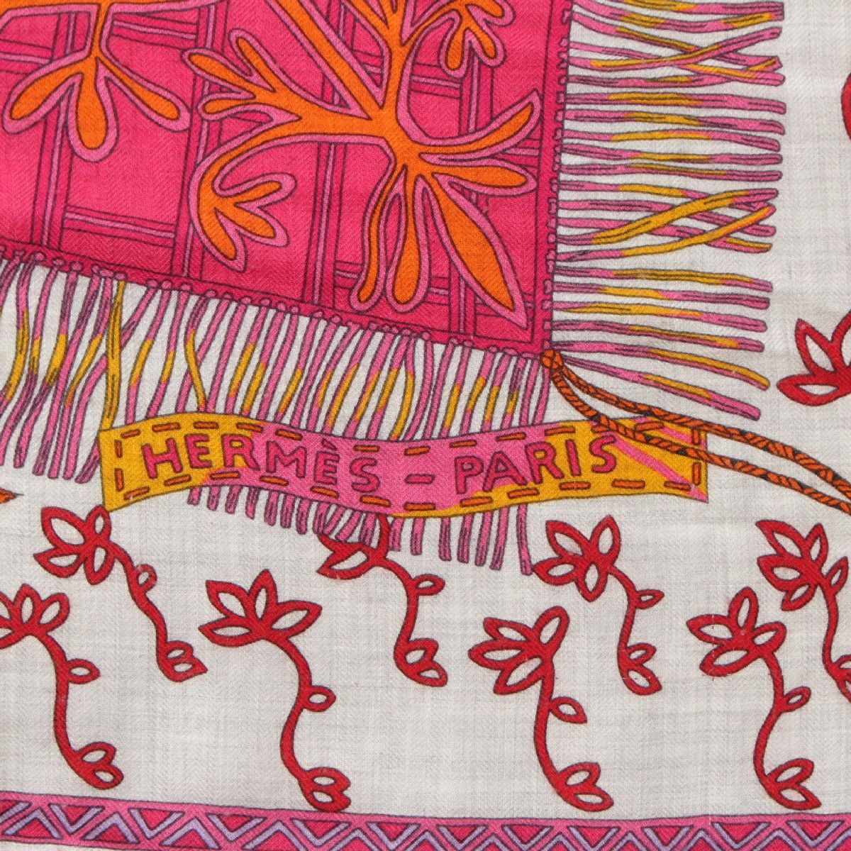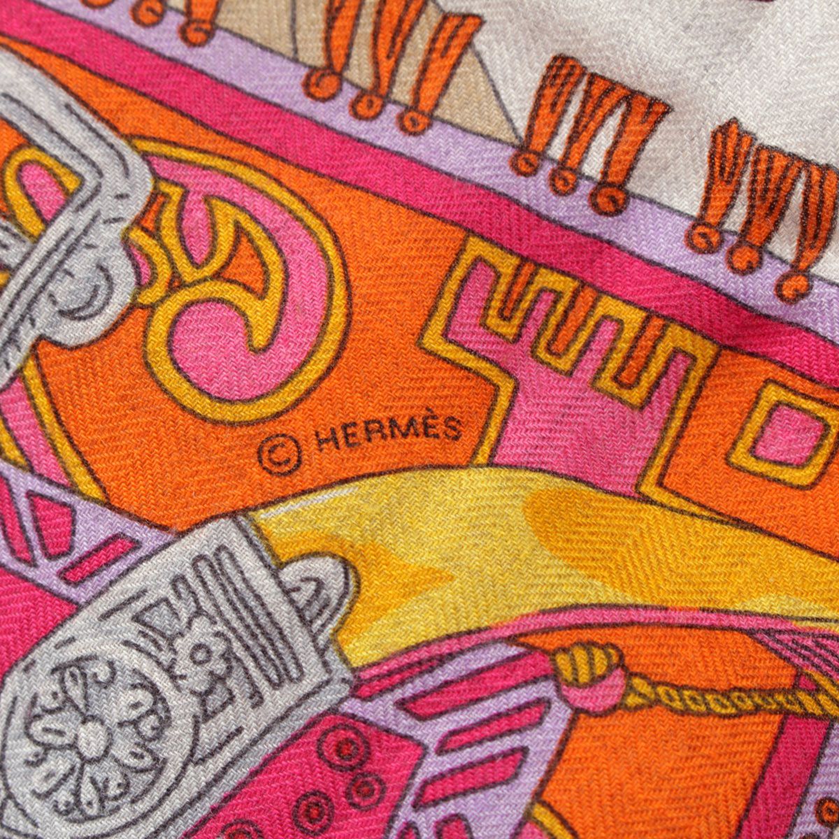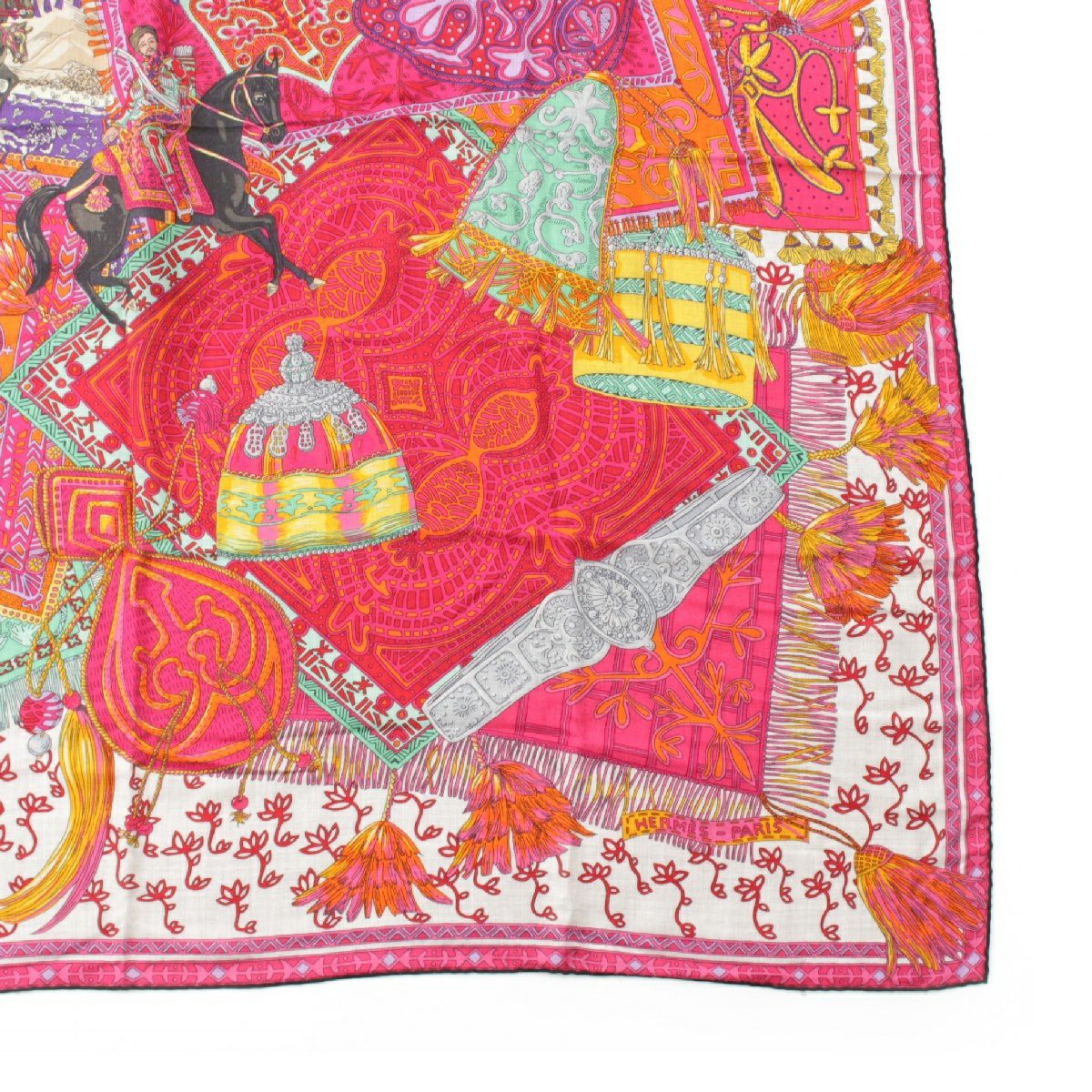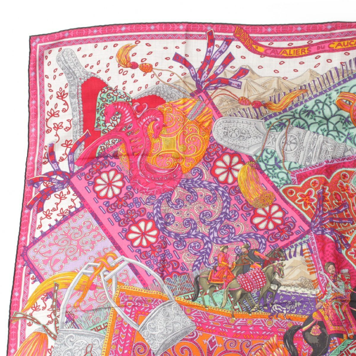 エルメス カレジェアン140 カシミヤ シルク Cavaliers du Caucase コーカサスの騎士 大判 スカーフ ストール ショール ピンク