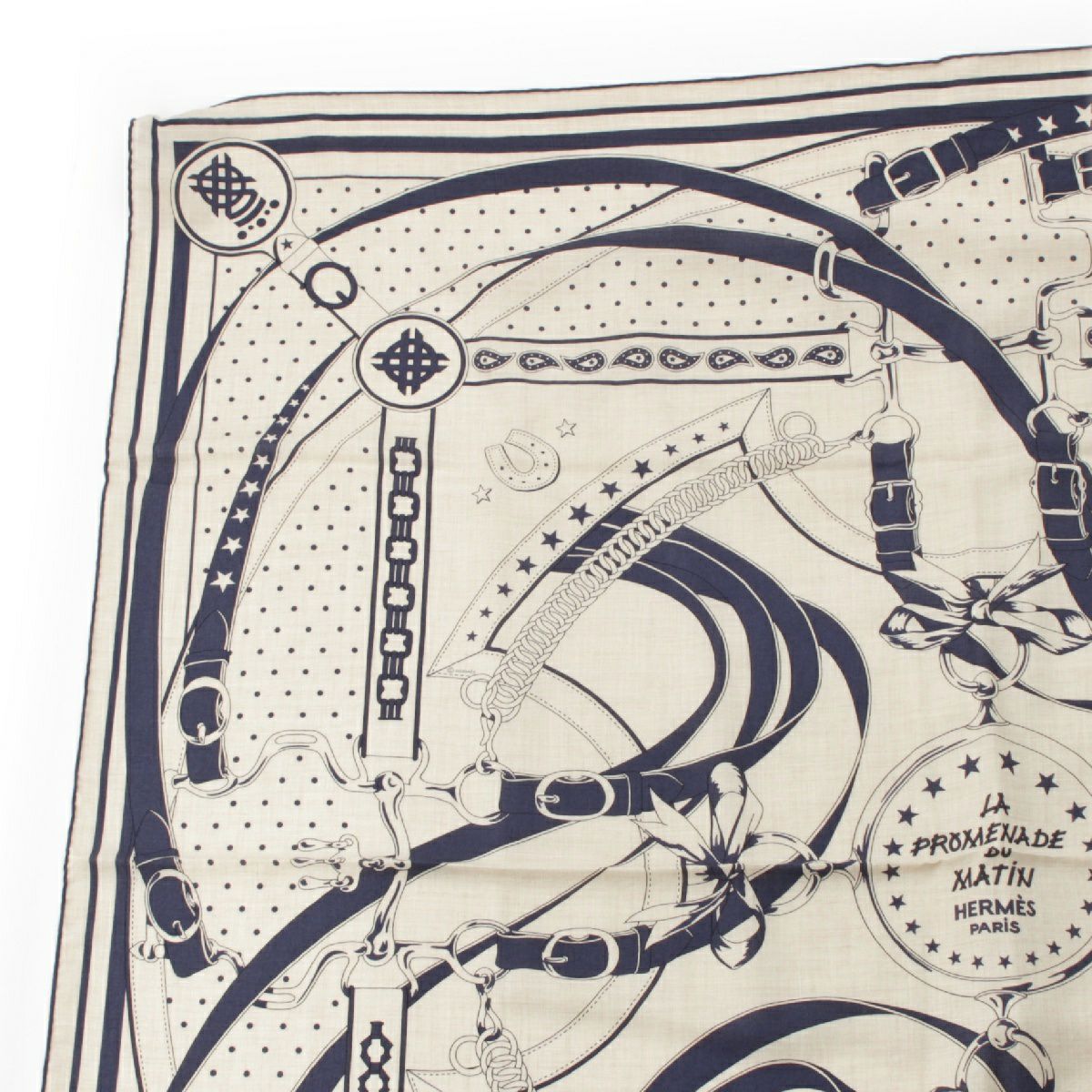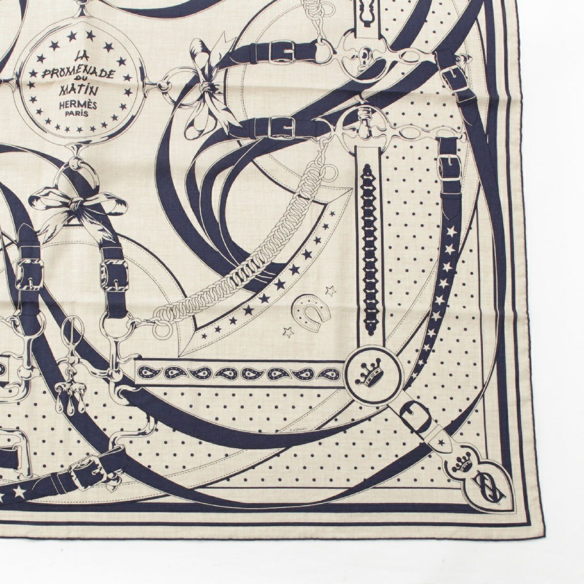 エルメス 23SS カレジェアン 140 カシミヤ シルク La Promenade du Matin 朝の散歩 大判 スカーフ ストール ショール ネイビー ベージュ