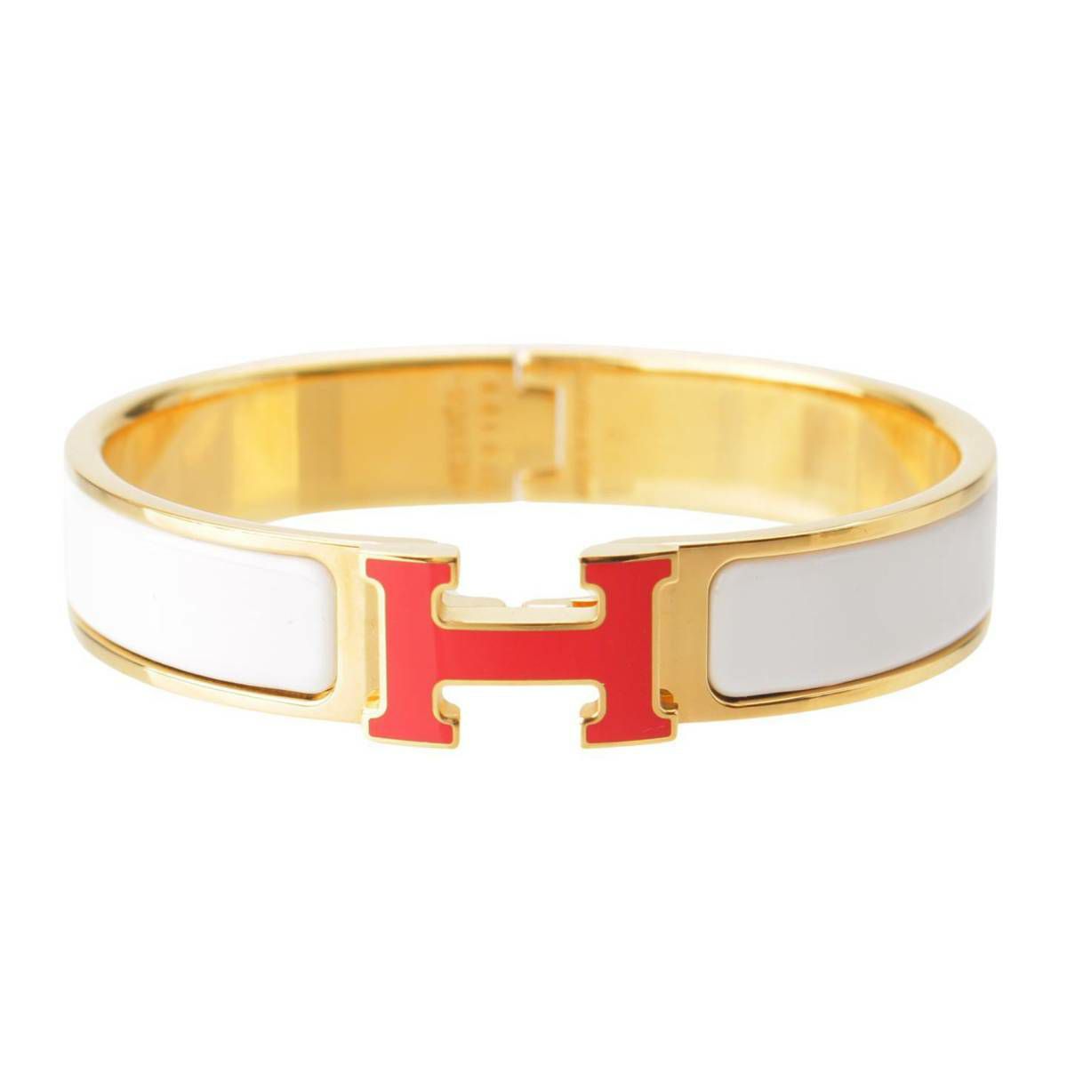 エルメス Hermes クリッククラックPM Hバングル ブレスレット レッド×ホワイト×ゴールド