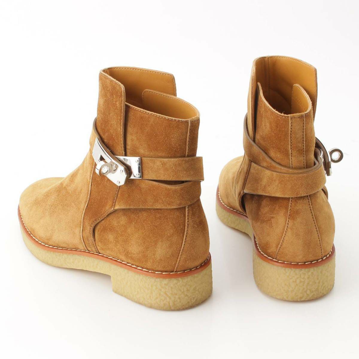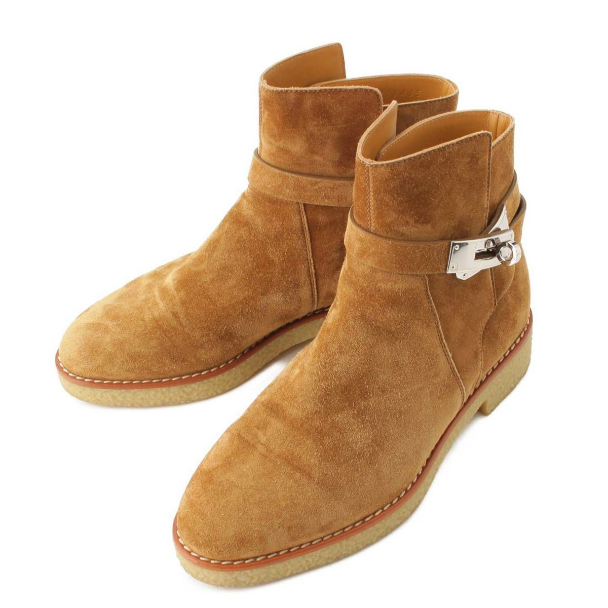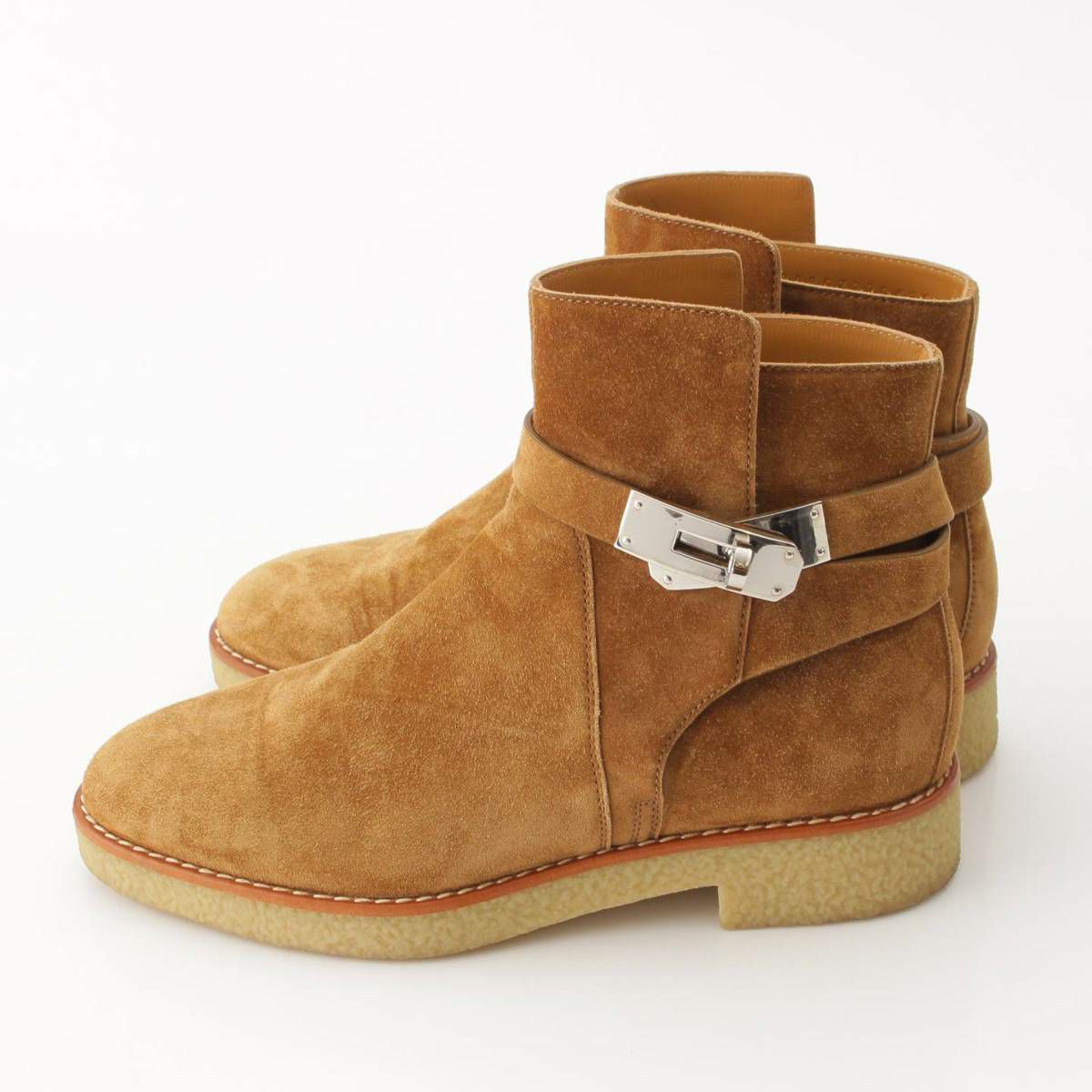 エルメス ヴィオ ケリー金具 スエード ブーティー アンクル ショートブーツ ブラウン