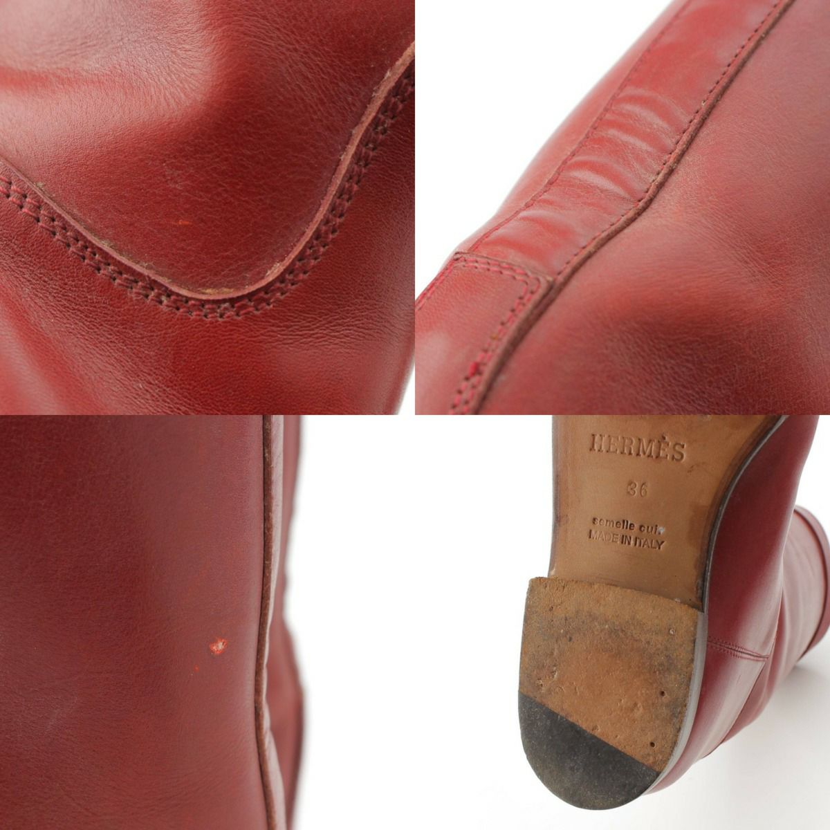 エルメス ケリー レザー ボックスカーフ ロングブーツ シルバー金具 レッド 36
