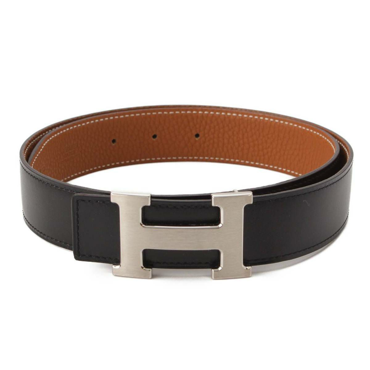 エルメス Hermes □M刻印 コンスタンス リバーシブル レザー Hベルト ブラック×ゴールド 80