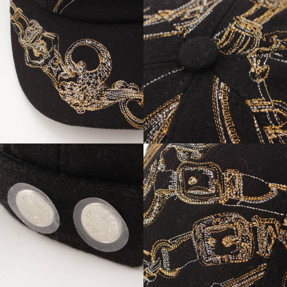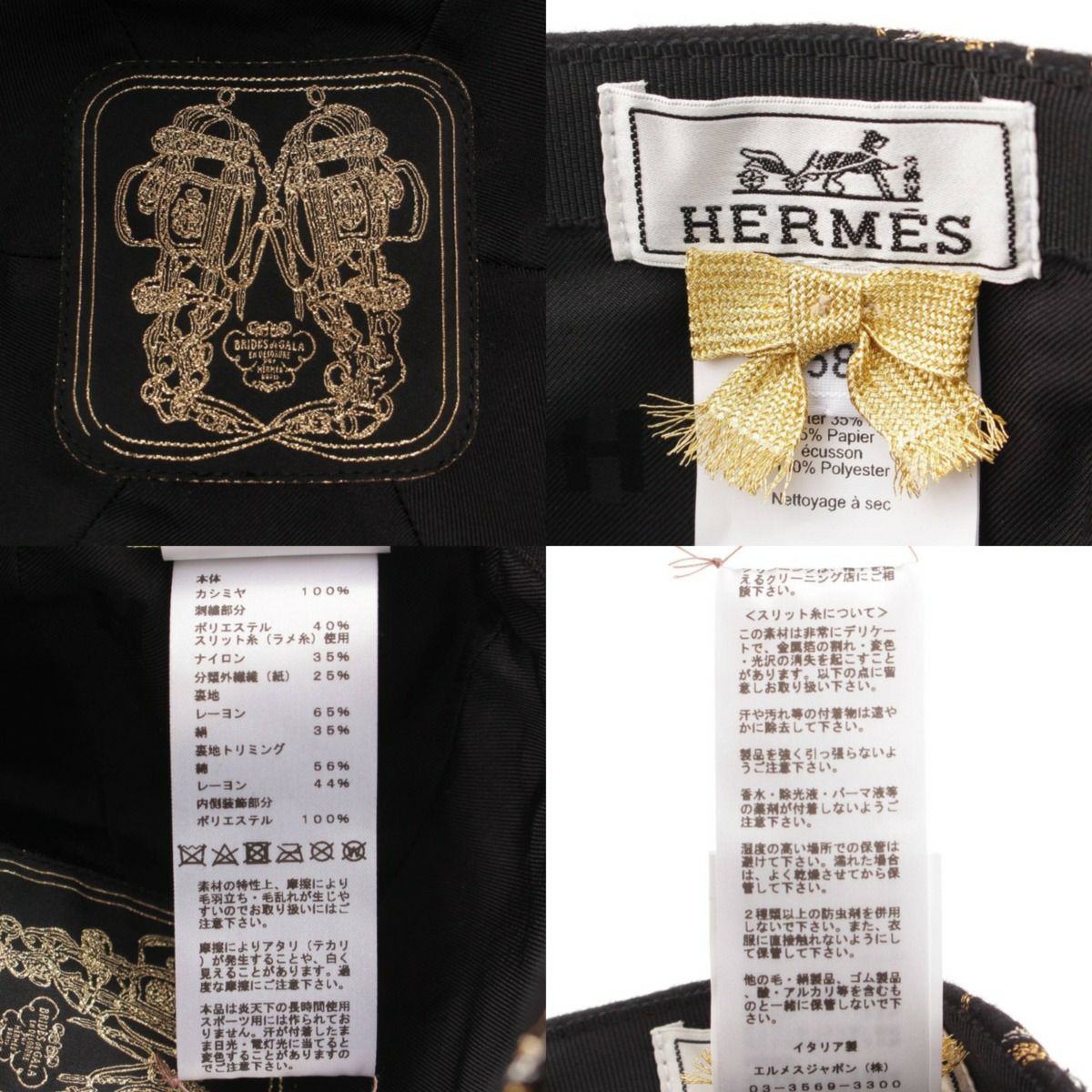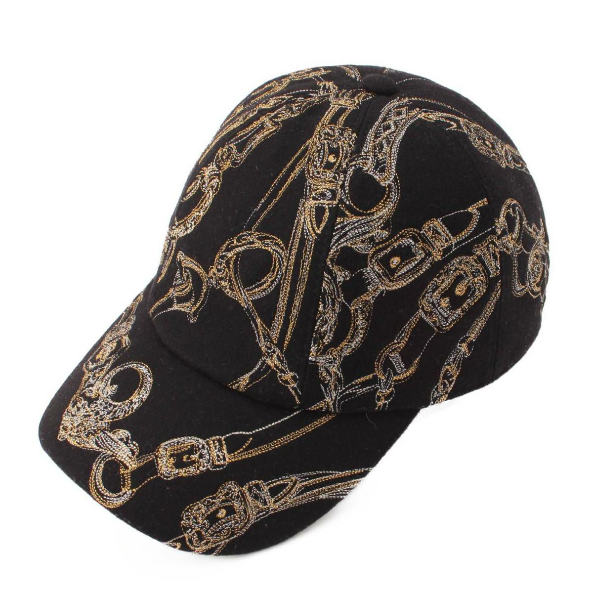 エルメス Hermes Serena Brides de Gala 刺繍 カシミヤ ベースボールキャップ 帽子 ブラック 58