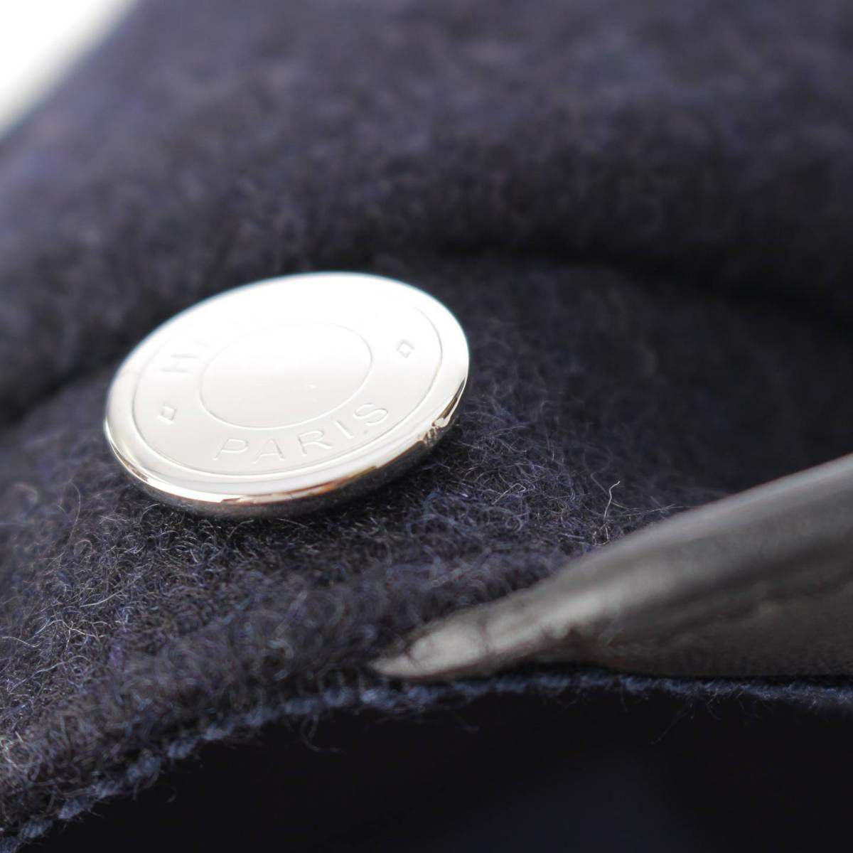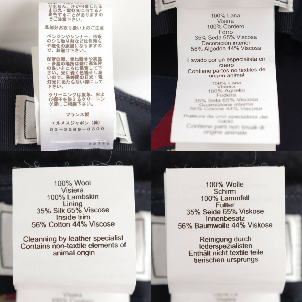 エルメス セリエボタン ロゴ ウール×レザー キャスケット 帽子 ネイビー×ブラック 57