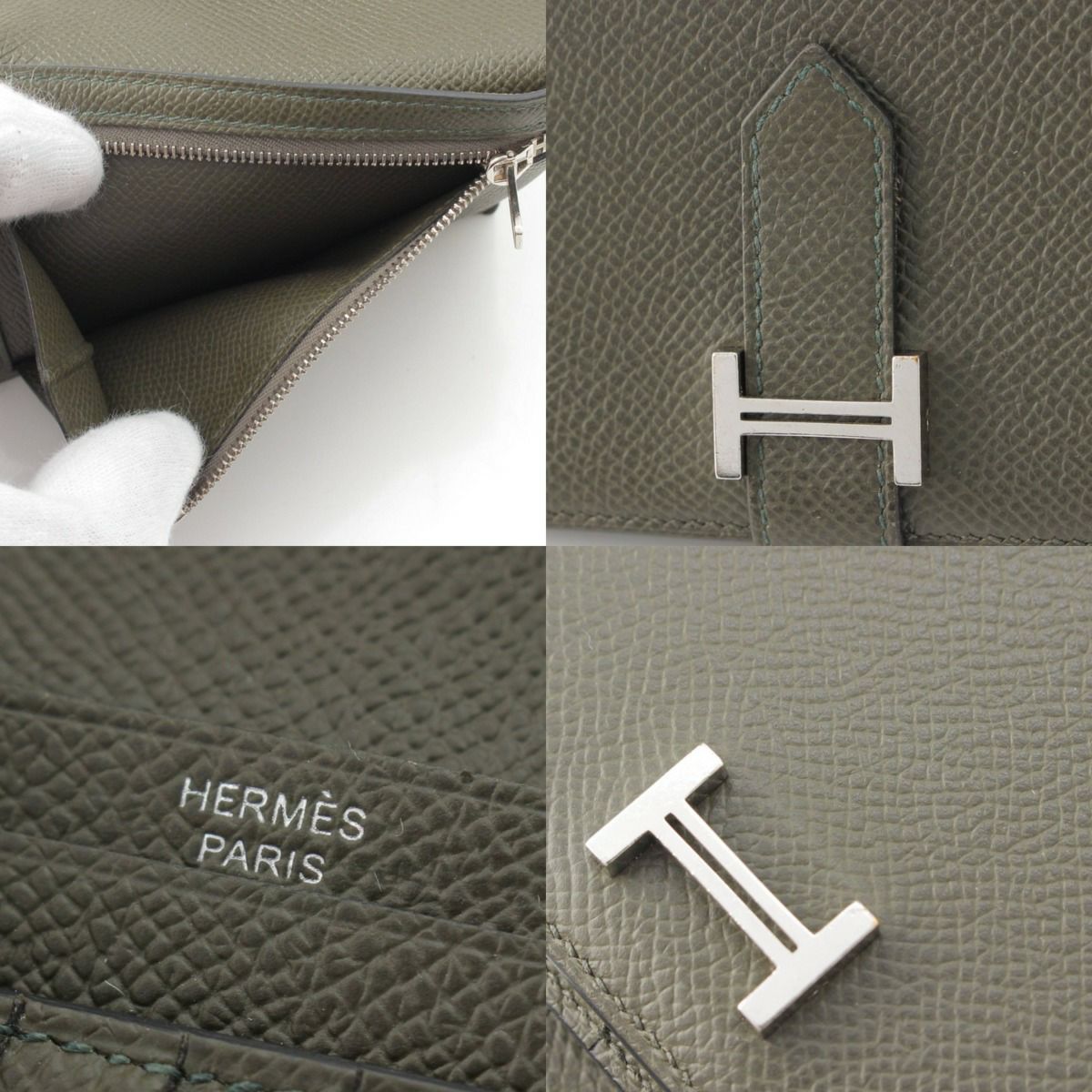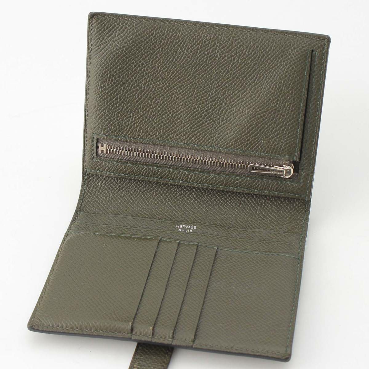 エルメス Z刻印 ベアンコンパクト ヴォーエプソン ウォレット 二つ折り財布 ヴェールグリス