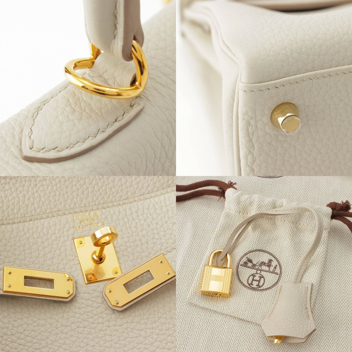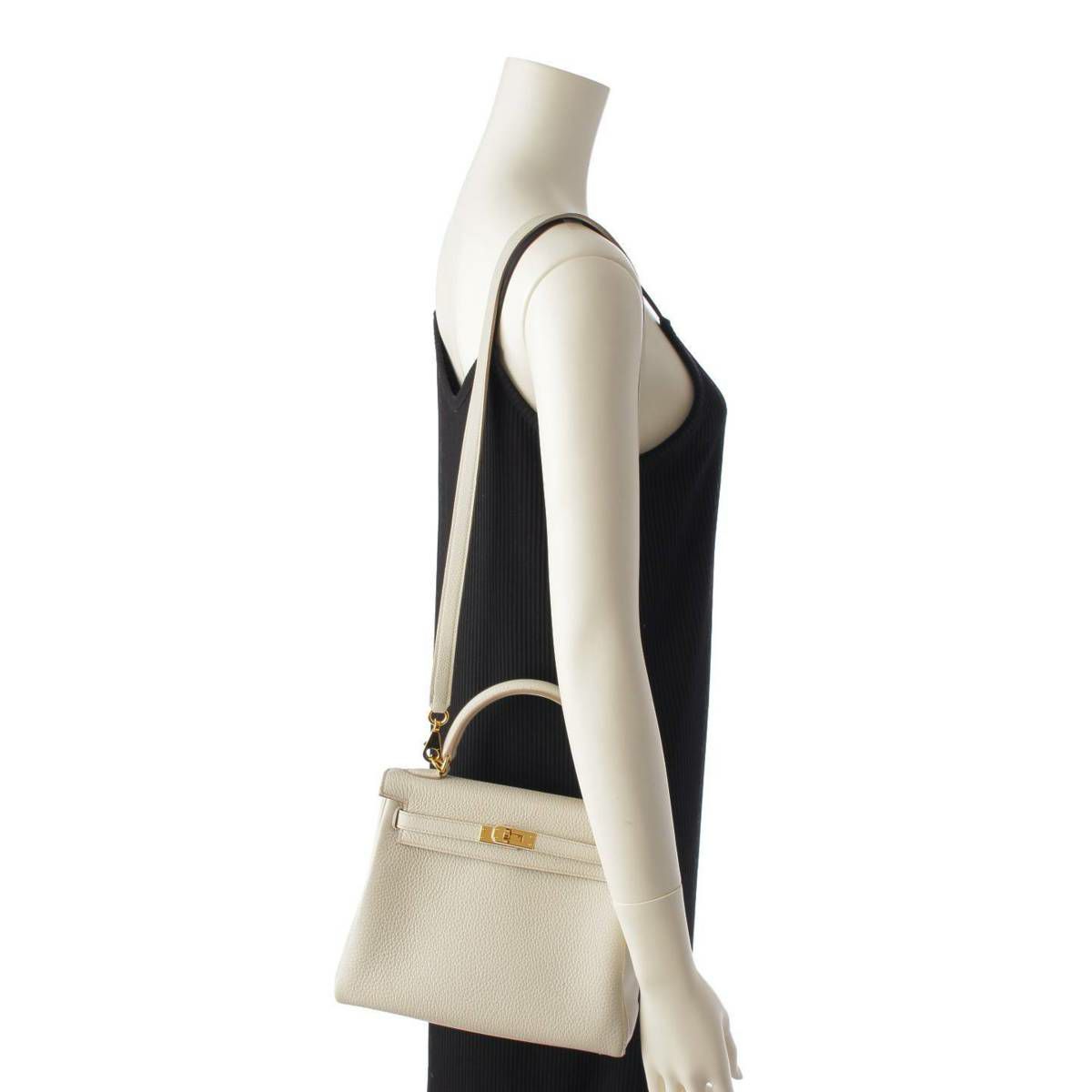 エルメス Hermes U刻印 ケリー25 トゴ 2way ショルダー ハンドバッグ ゴールド金具 ベトン ホワイト系