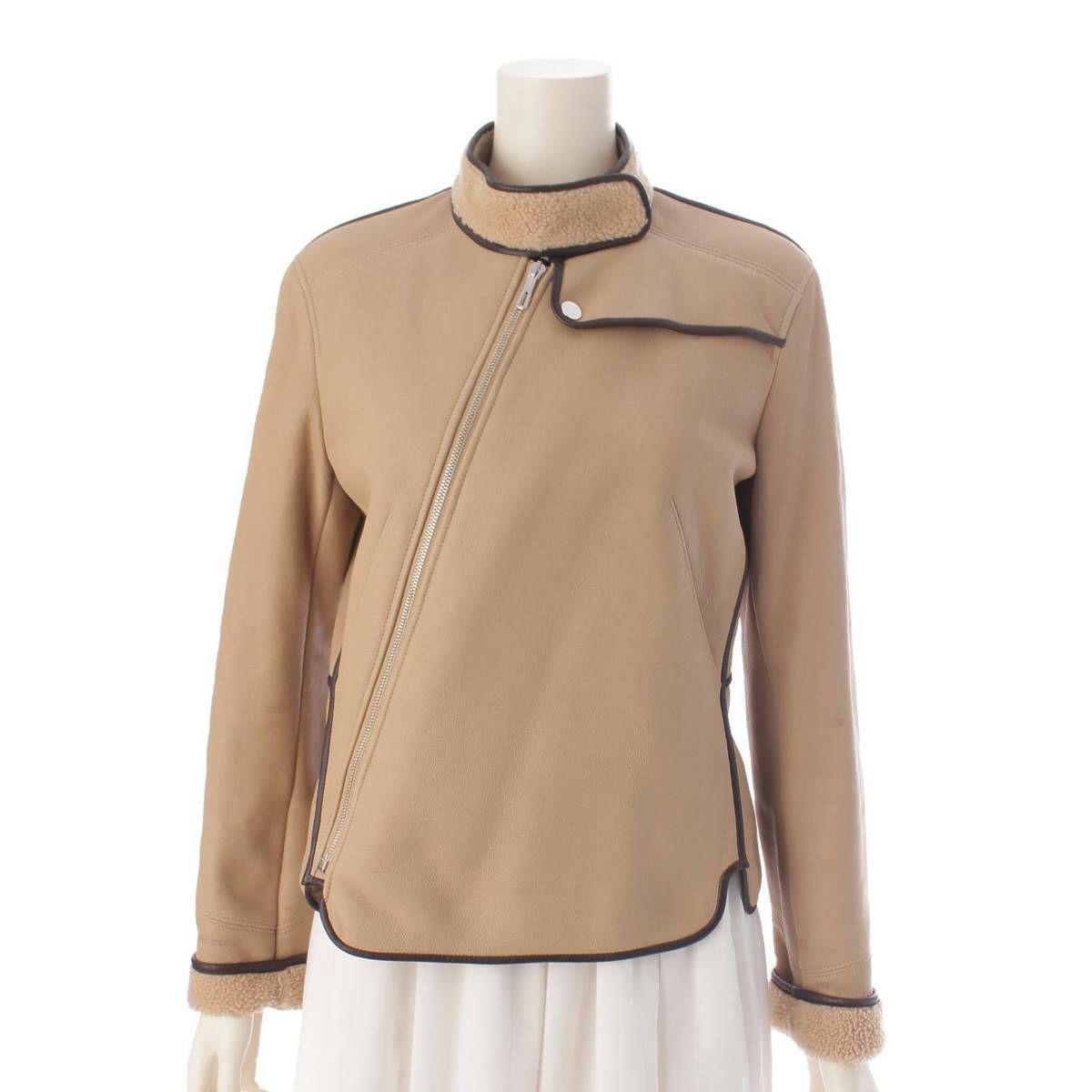エルメス ムートンファー レザー ライダース バイカージャケット ブラウン 38