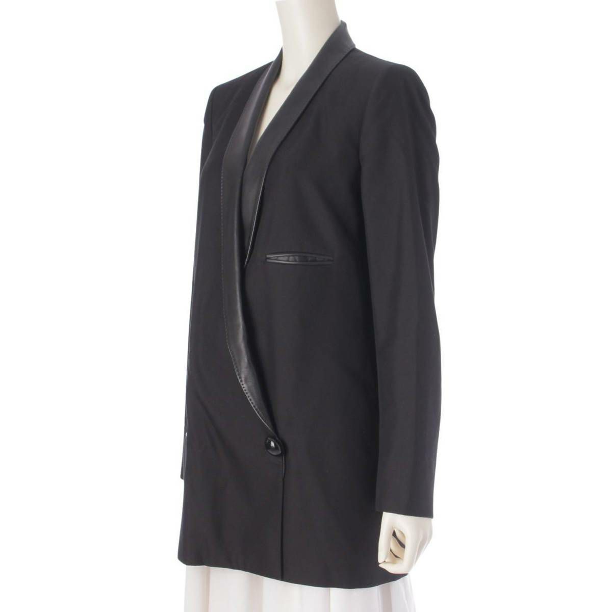 エルメス シルク ラムレザー シングル テーラード ジャケット トップス ブラック 38
