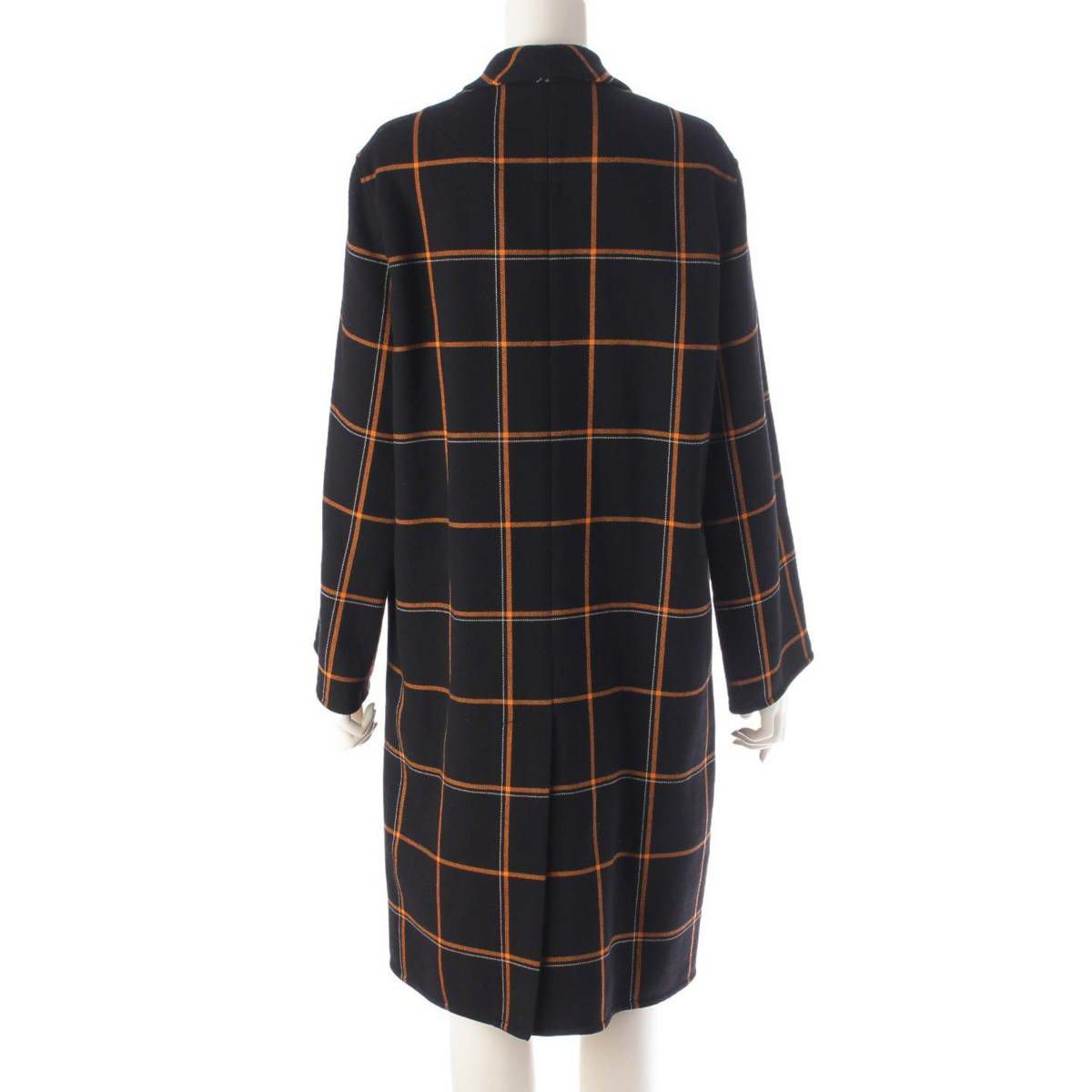 エルメス 16年 チェック ヴァージンウール ロングコート ブラック オレンジ 34