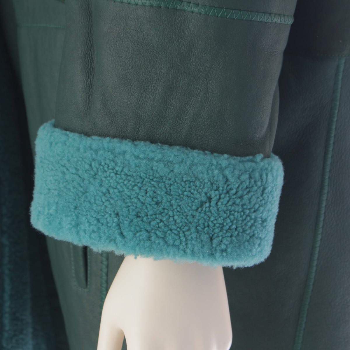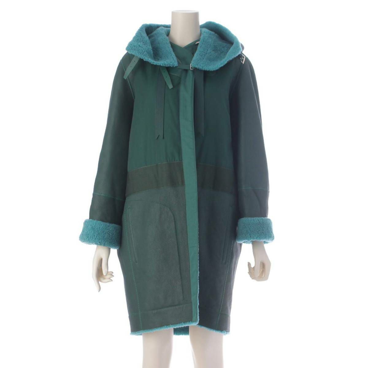 エルメス ムートン セリエボタン トリミング フード付き ロングコート グリーン 34