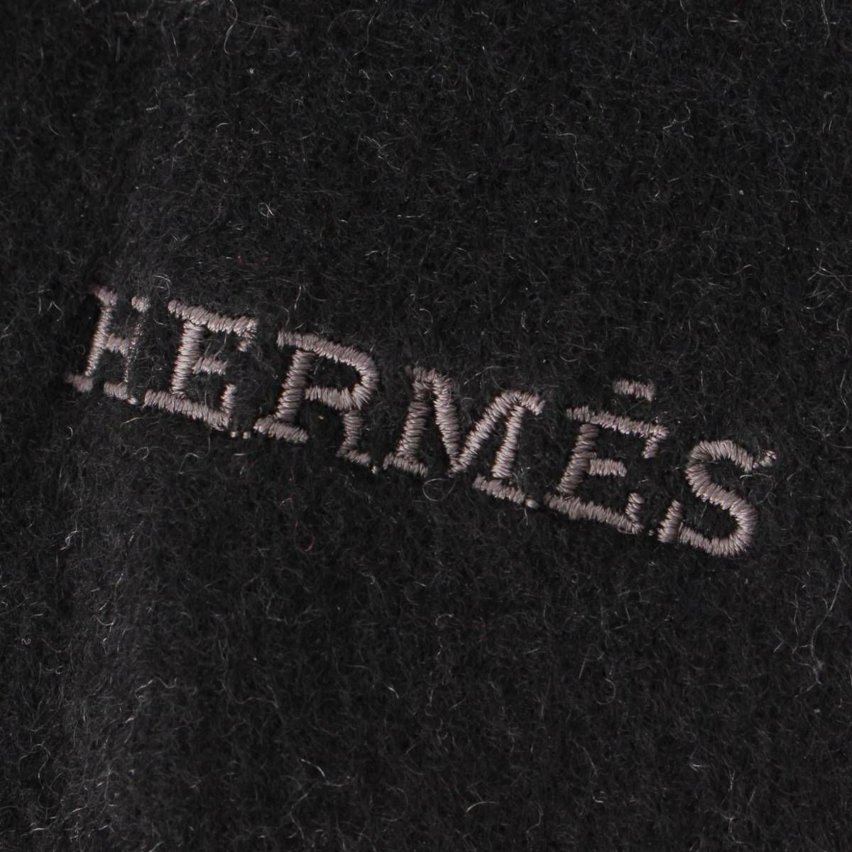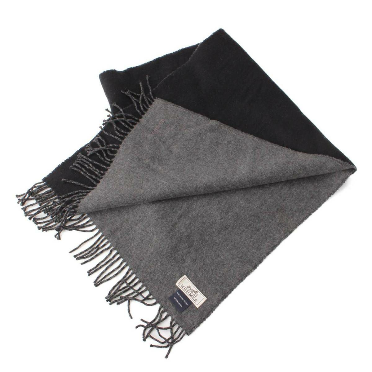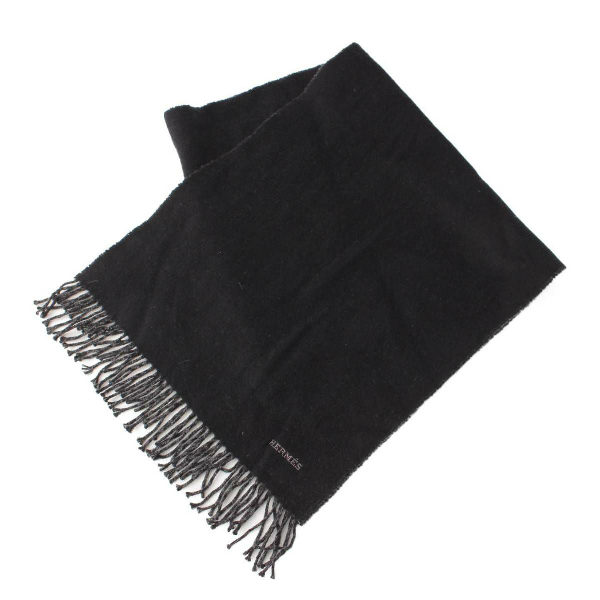 エルメス メンズ レクトヴェルソ ロゴ刺繍 リバーシブル カシミヤ マフラー ブラック×グレー