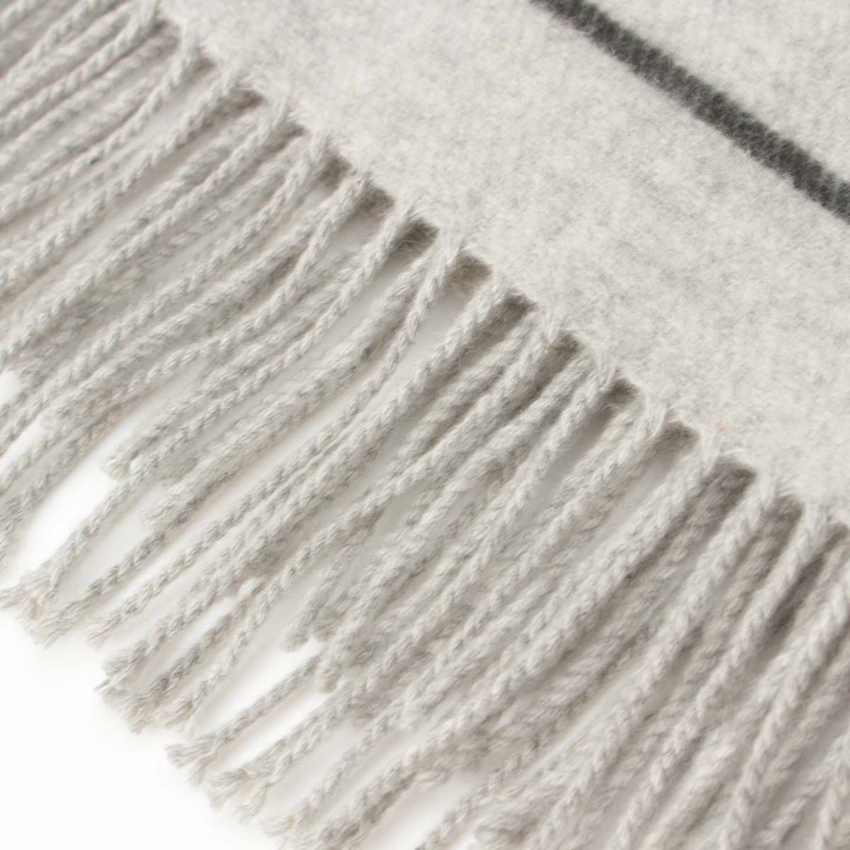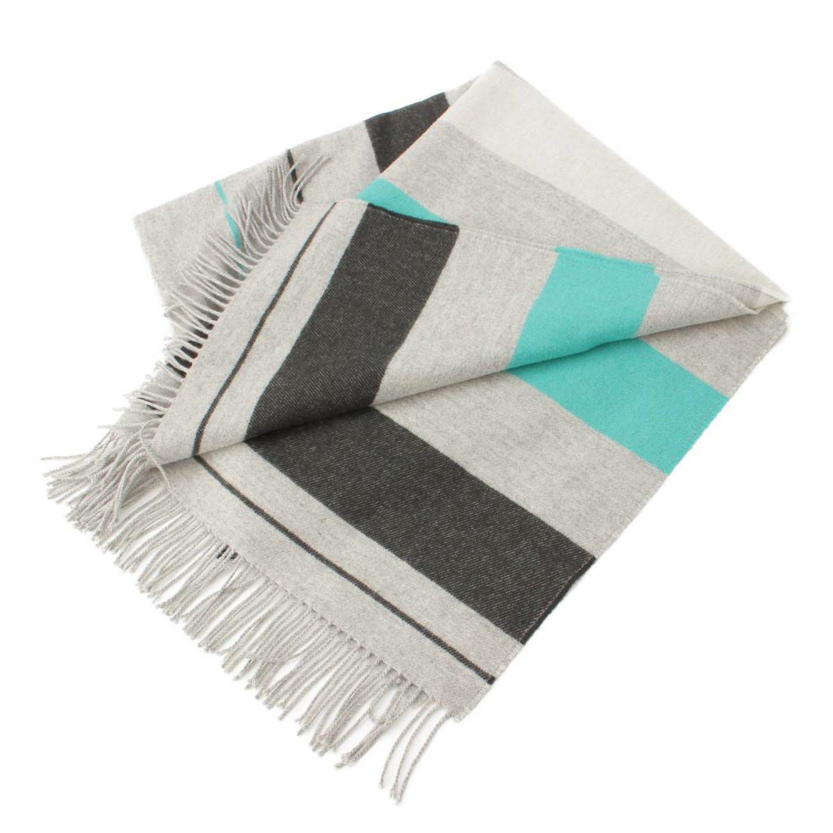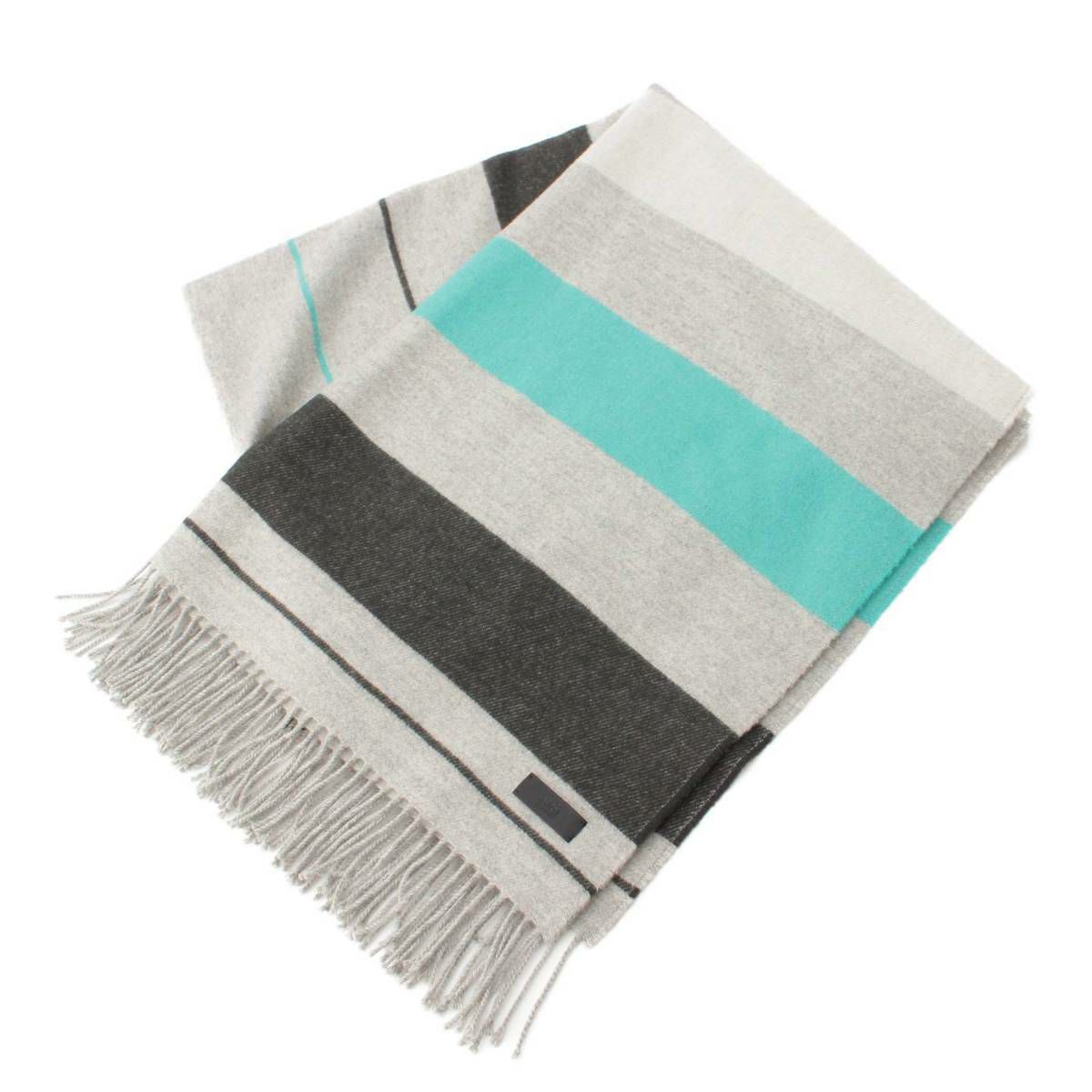エルメス Hermes ロゴ レザーパッチ ボーダー カシミヤ ストール マフラー グレー×グリーン
