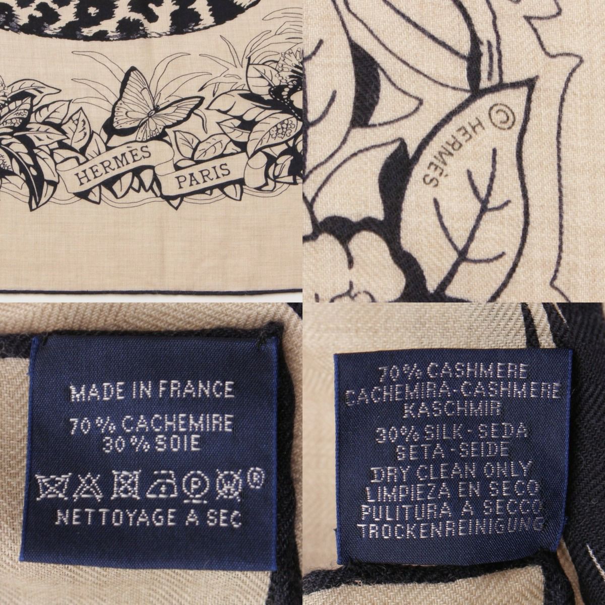 エルメス Hermes カレジェアン 140 JUNGLE LOVE カシミヤ×シルク 大判 ストール ナチュラル