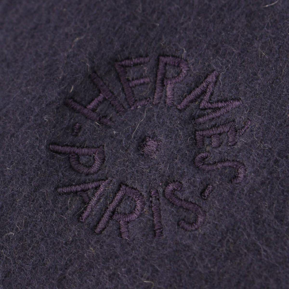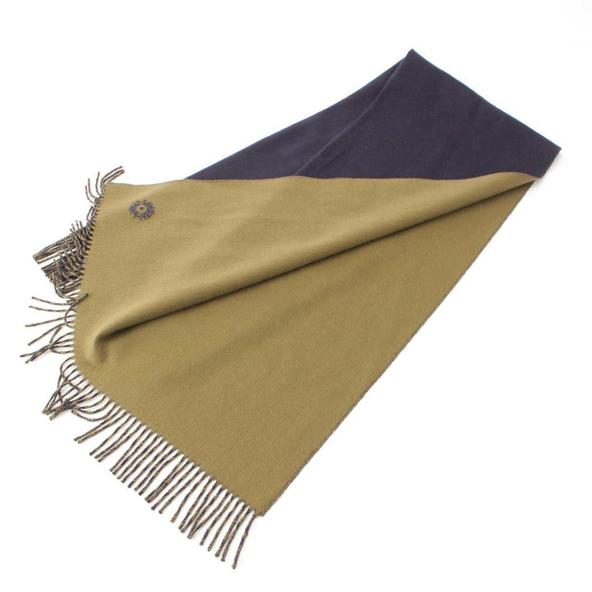 エルメス カシミヤ サークルロゴ刺繍 ダブルフェイス マフラー ストール カーキ×ネイビー