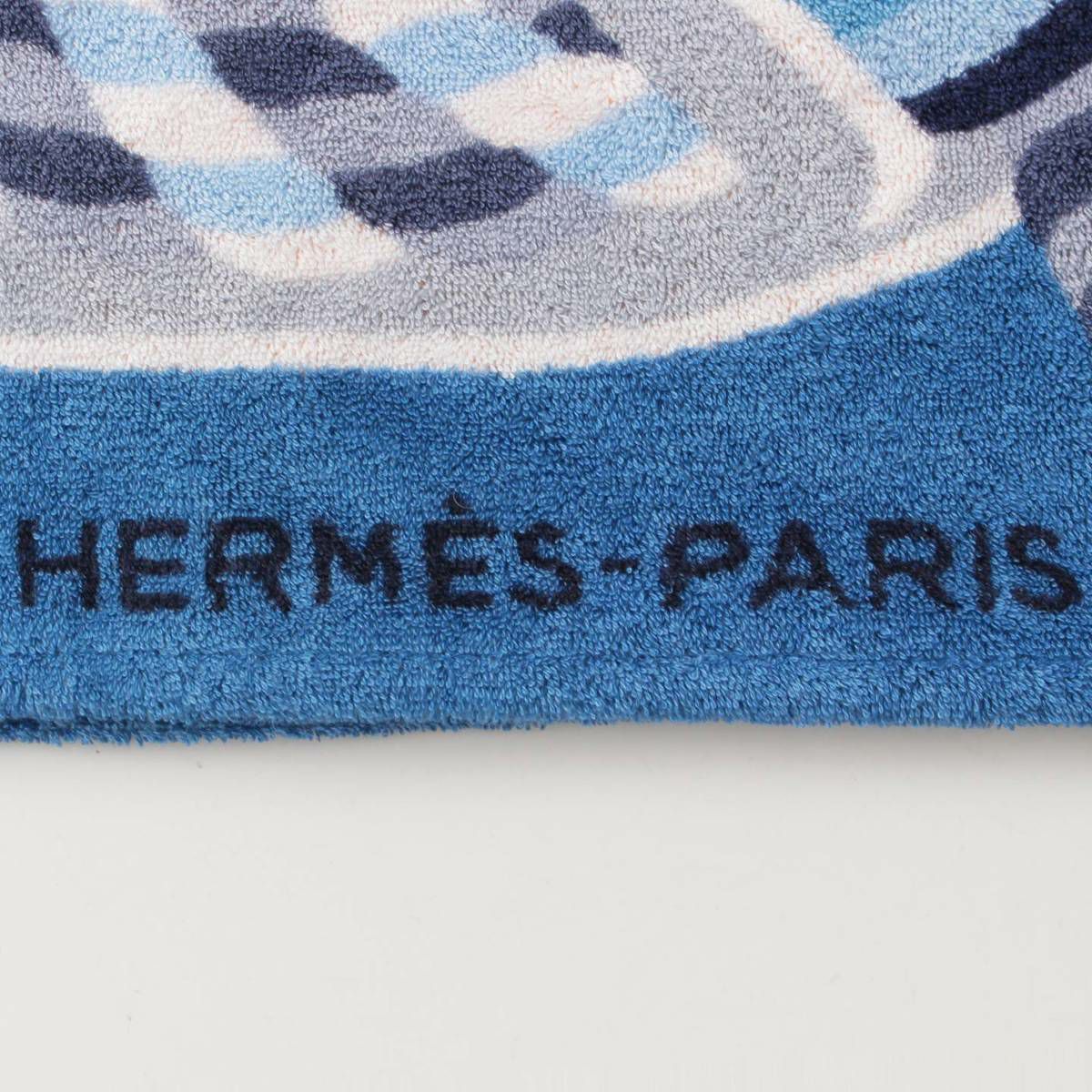 エルメス Hermes シェーヌダンクル ロゴ コットン ビーチタオル ブランケット ブルー×オレンジ