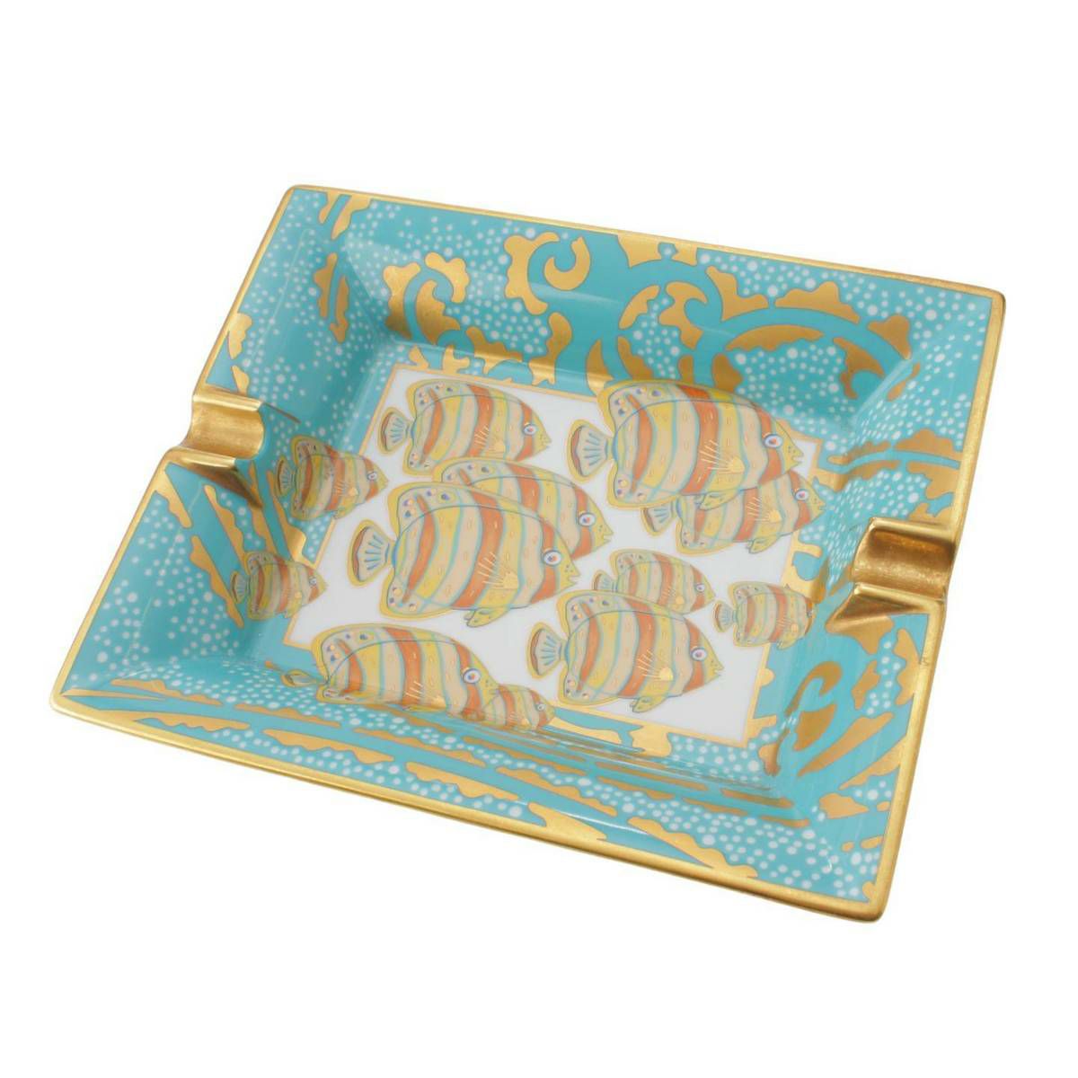 エルメス Hermes アッシュ トレイ 灰皿 魚 ブルーグリーン×ゴールド×マルチカラー