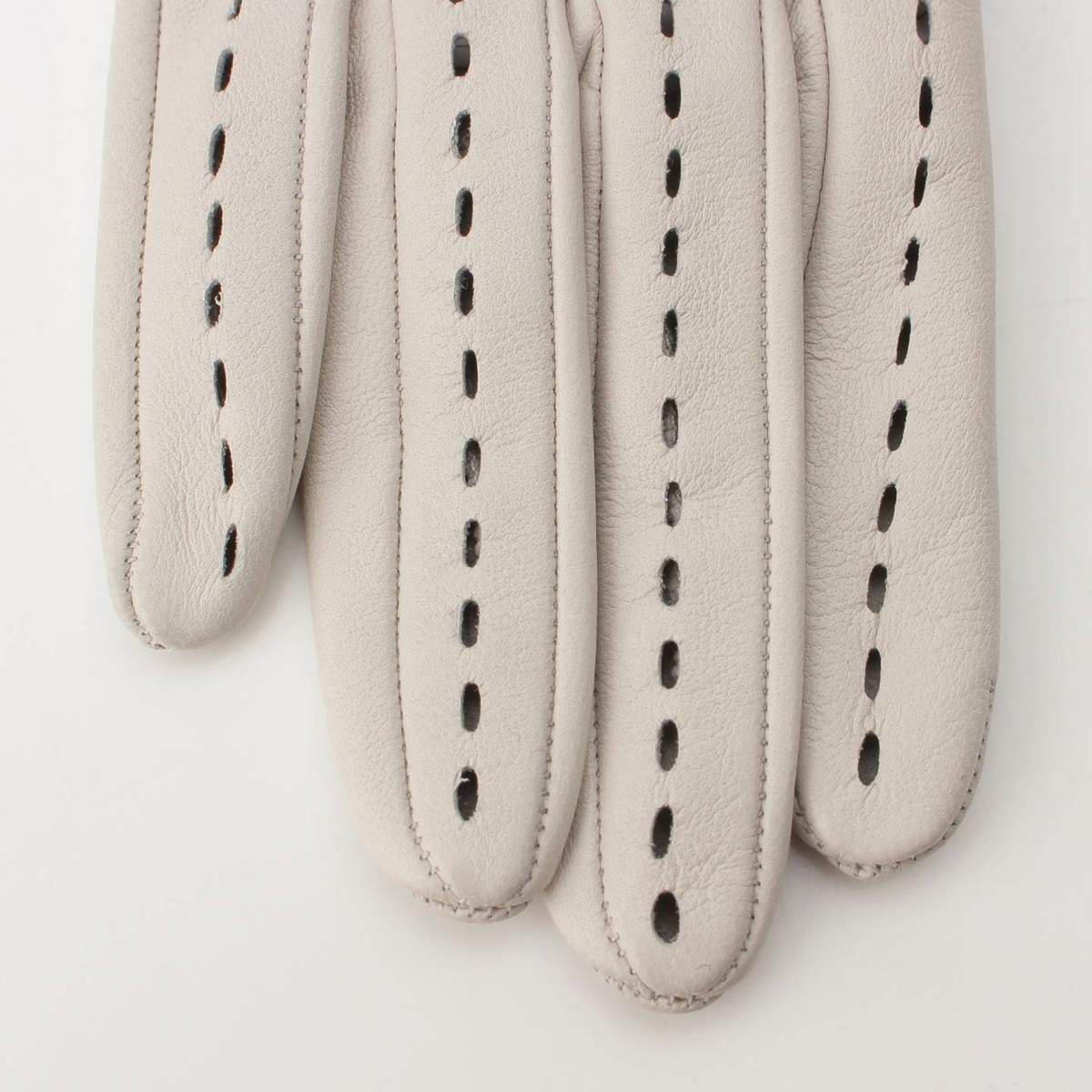 エルメス Hermes パンチング ストライプ ラムスキン レザー グローブ 手袋 グレー 6.5