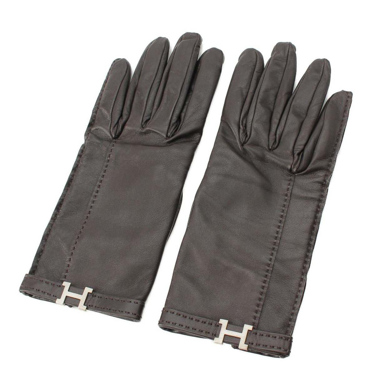 エルメス レザー グローブ 革手袋 手袋 H金具 シルバー金具 ソヤ ブラック 6 1/2