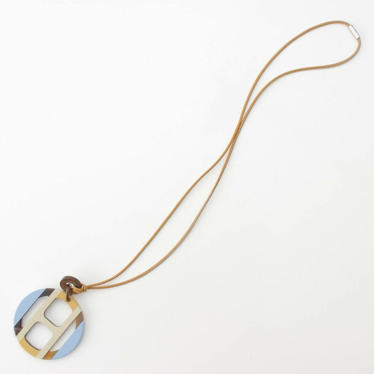 エルメス Hエキップ バッファローホーン ラッカー レザー紐 ネックレス マルチカラー