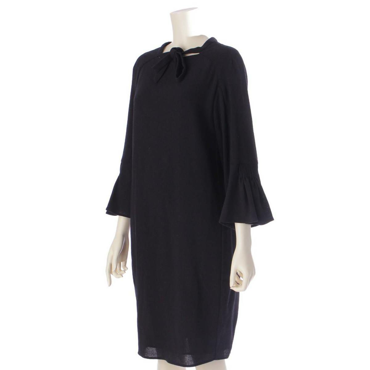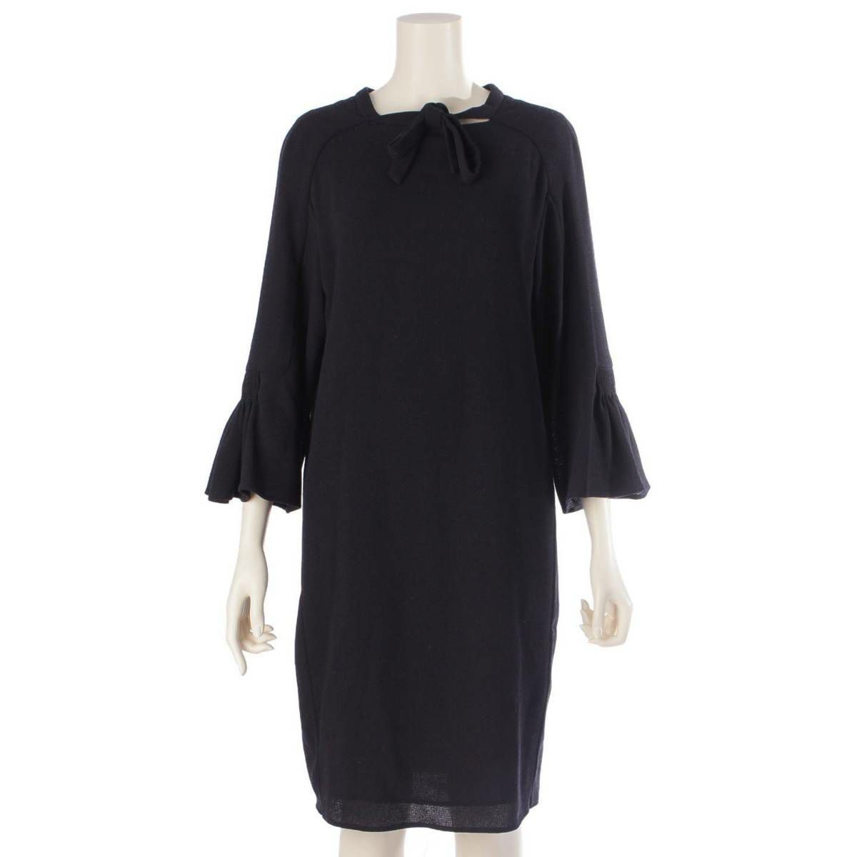 エルメス Hermes ウール フレアスリーブ リボン ボウタイ 七分丈 ワンピース ドレス ブラック 34
