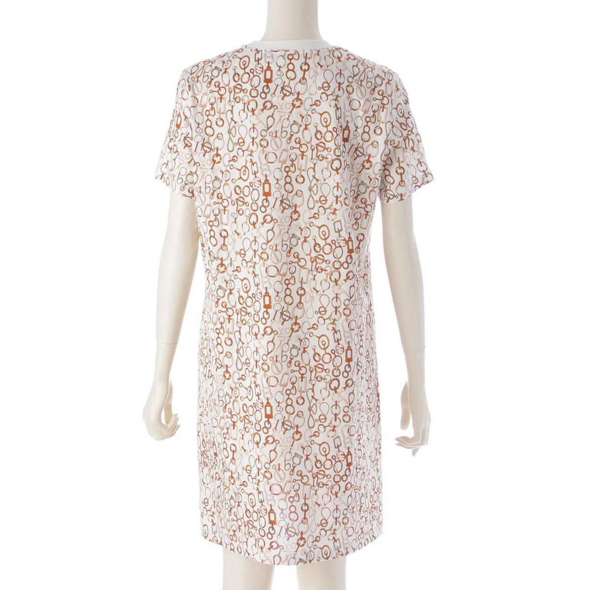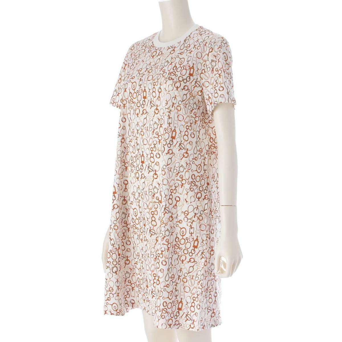 エルメス Hermes 23年 ビット柄 総柄プリント コットン 半袖 シャツワンピース ホワイト 40