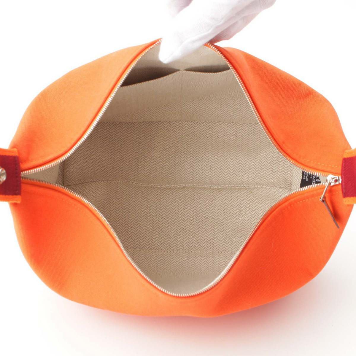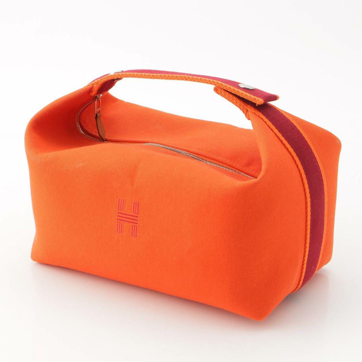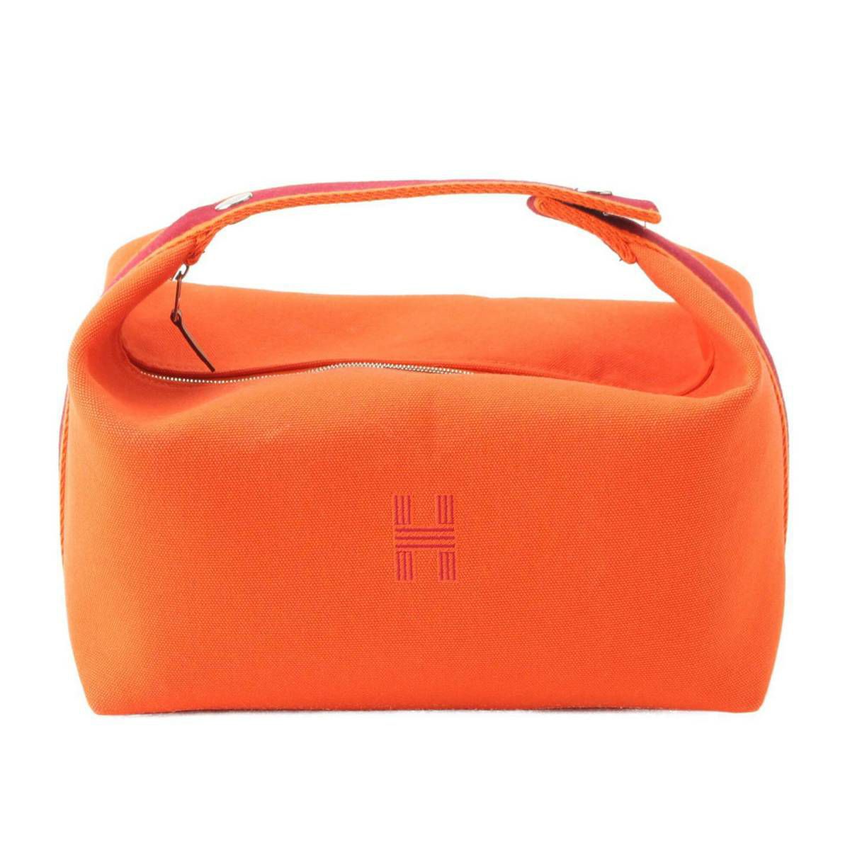 エルメス Hermes ブリッド ア ブラックGM キャンバス ポーチ ハンドバッグ オレンジ