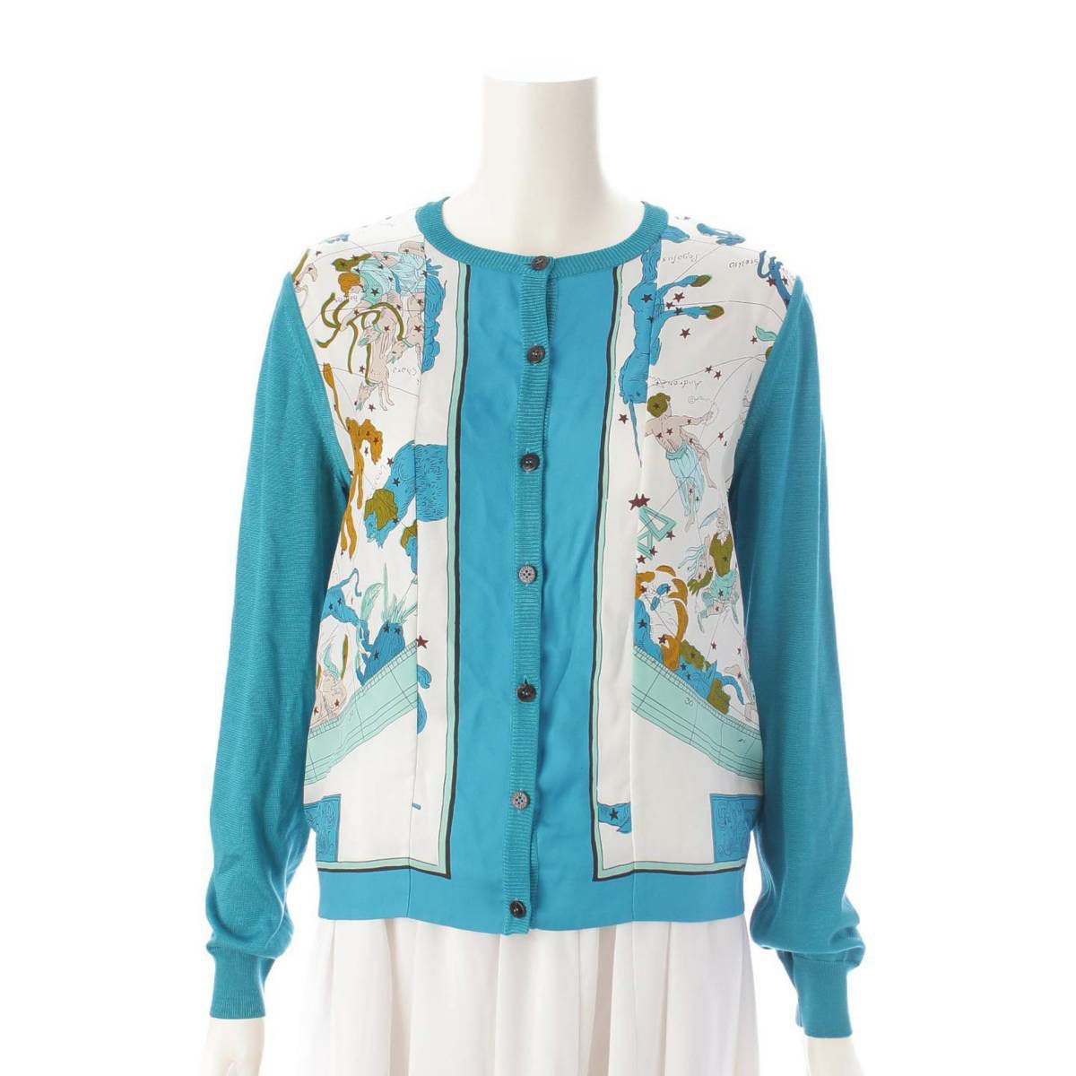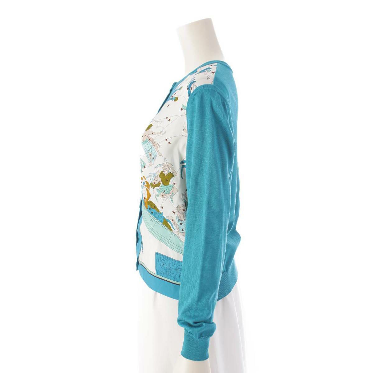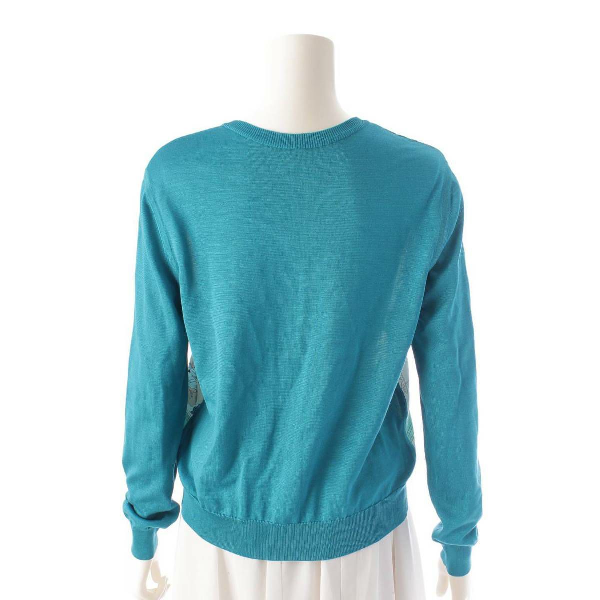 エルメス ツイルレーヌ シルク切替 長袖 ニットカーディガン トップス ブルー 36