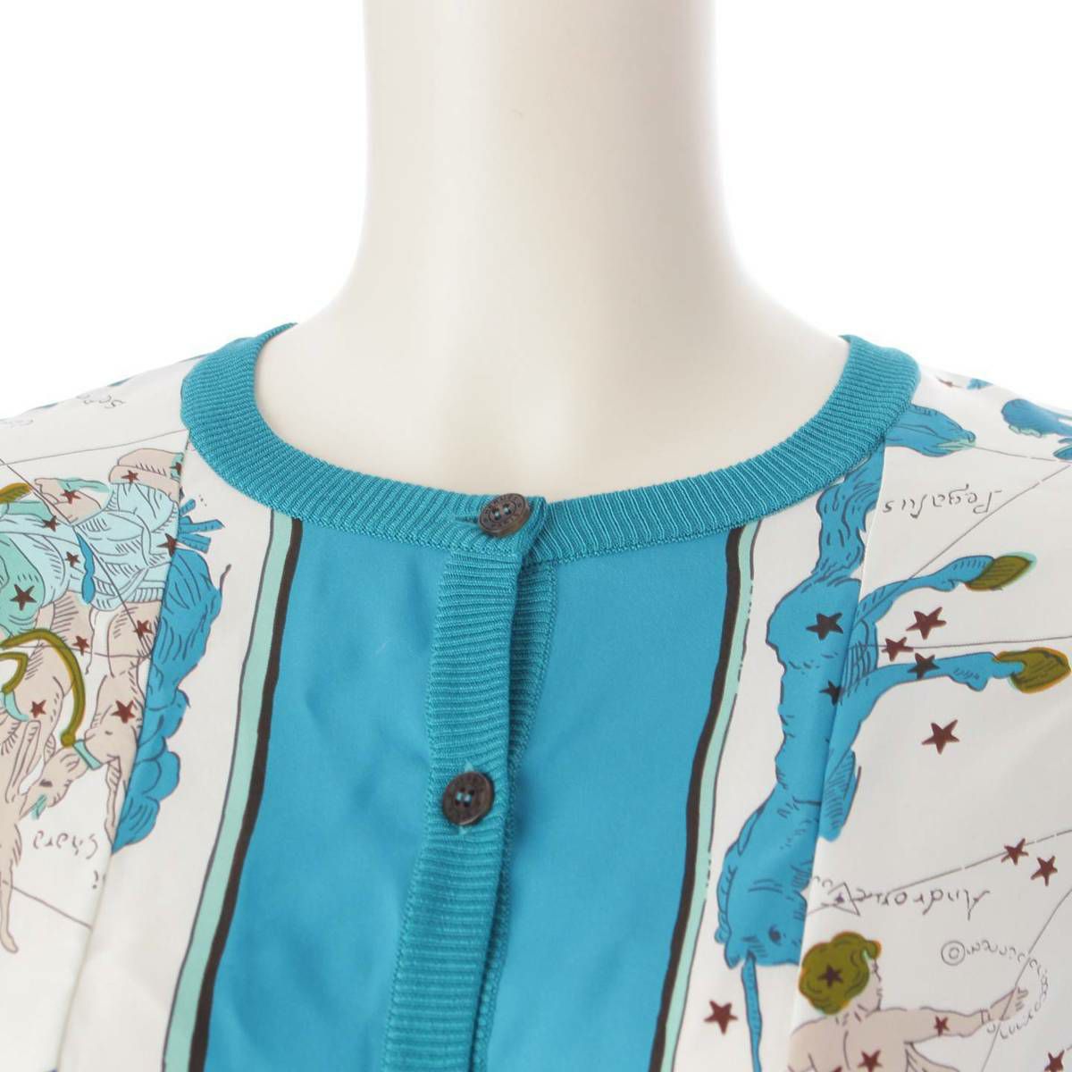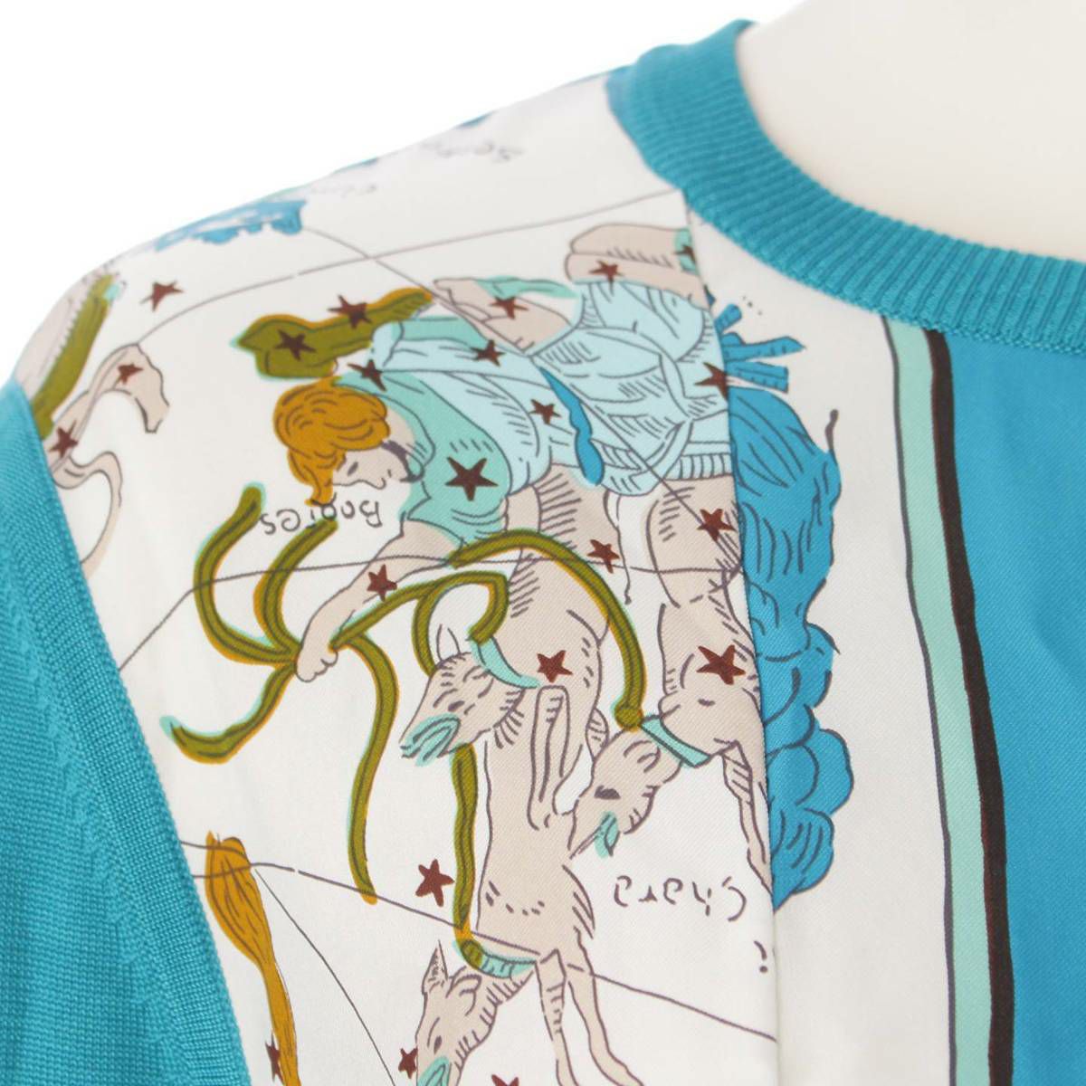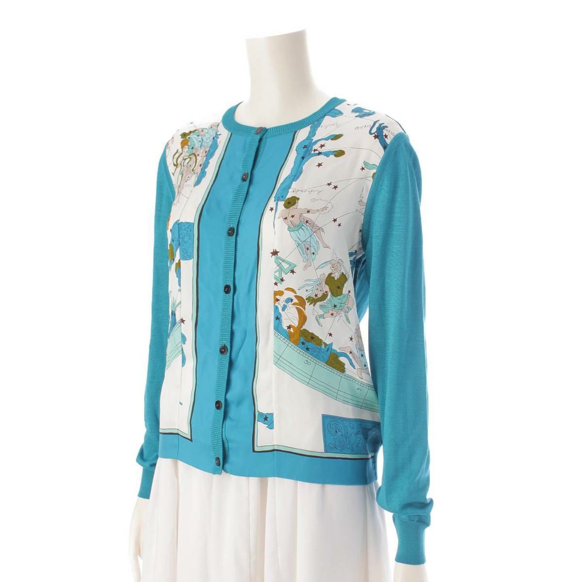 エルメス ツイルレーヌ シルク切替 長袖 ニットカーディガン トップス ブルー 36