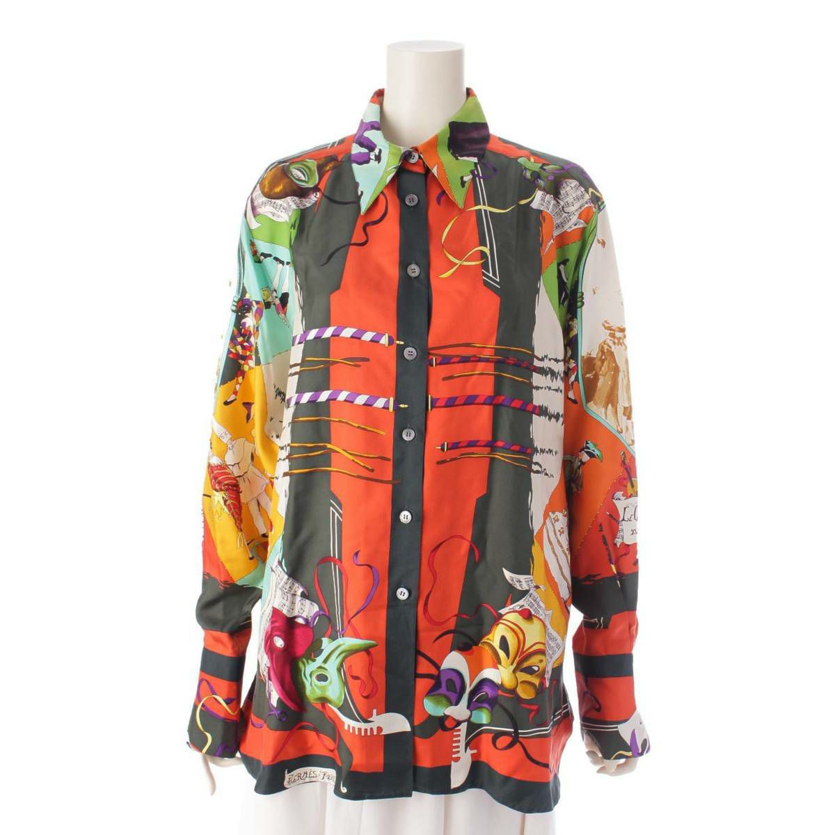エルメス Hermes LE CARNAVAL DE VENISE ベニスのカーニバル シルク シャツ 長袖 マルチカラー 40