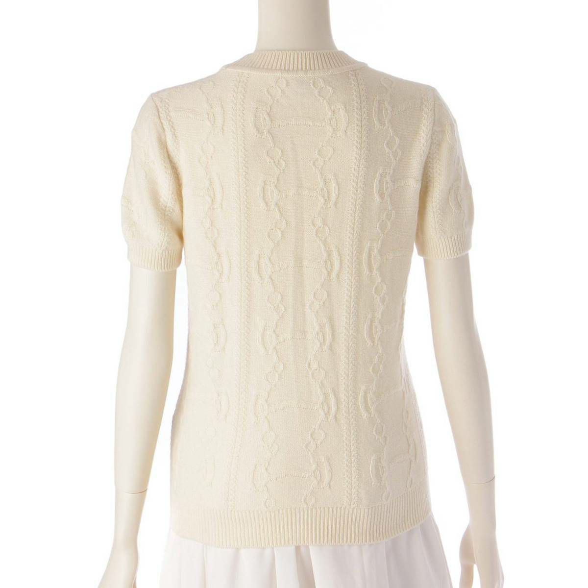 エルメス Hermes 22AW ヴァージンウール カシミヤ 半袖 ニット トップス ホワイト 38