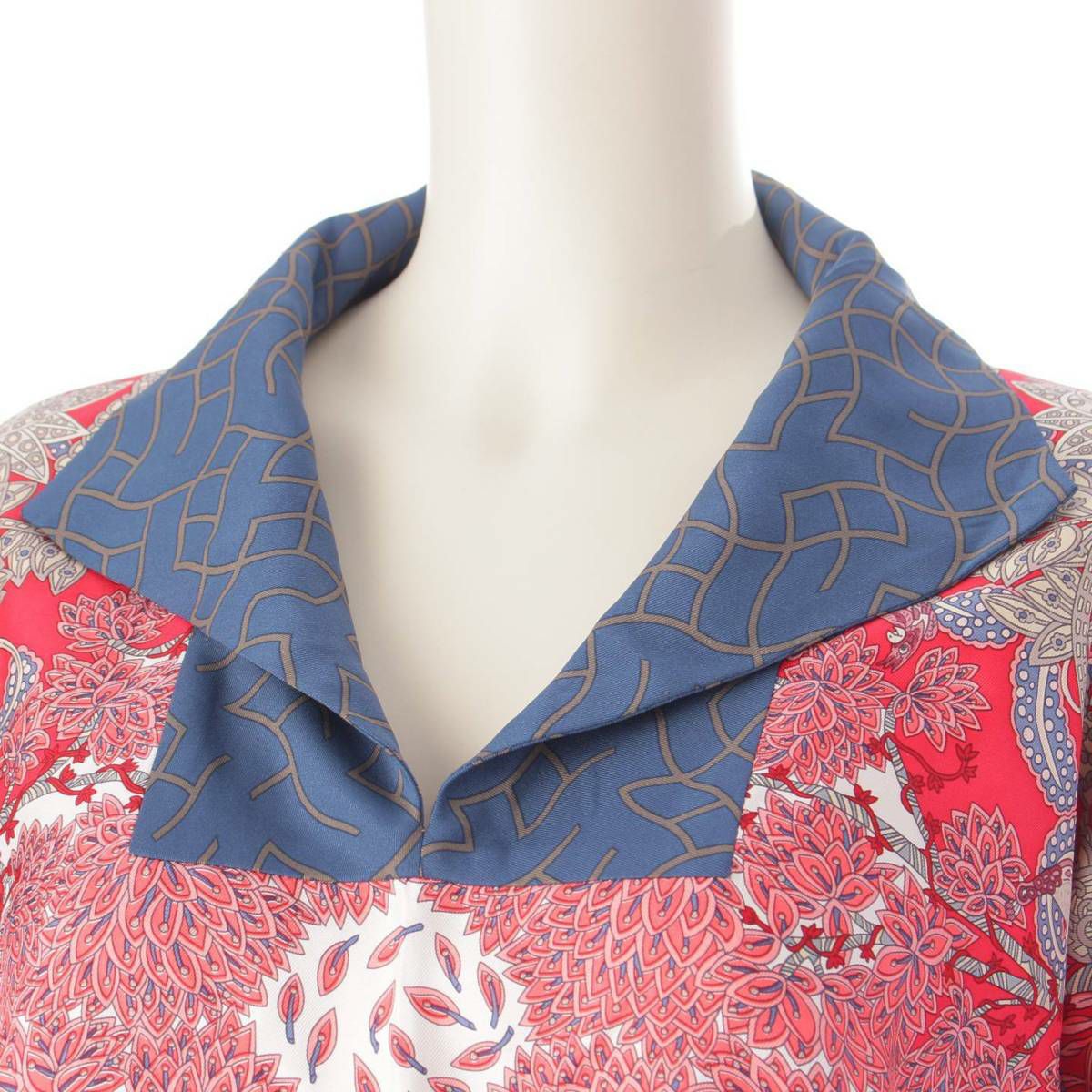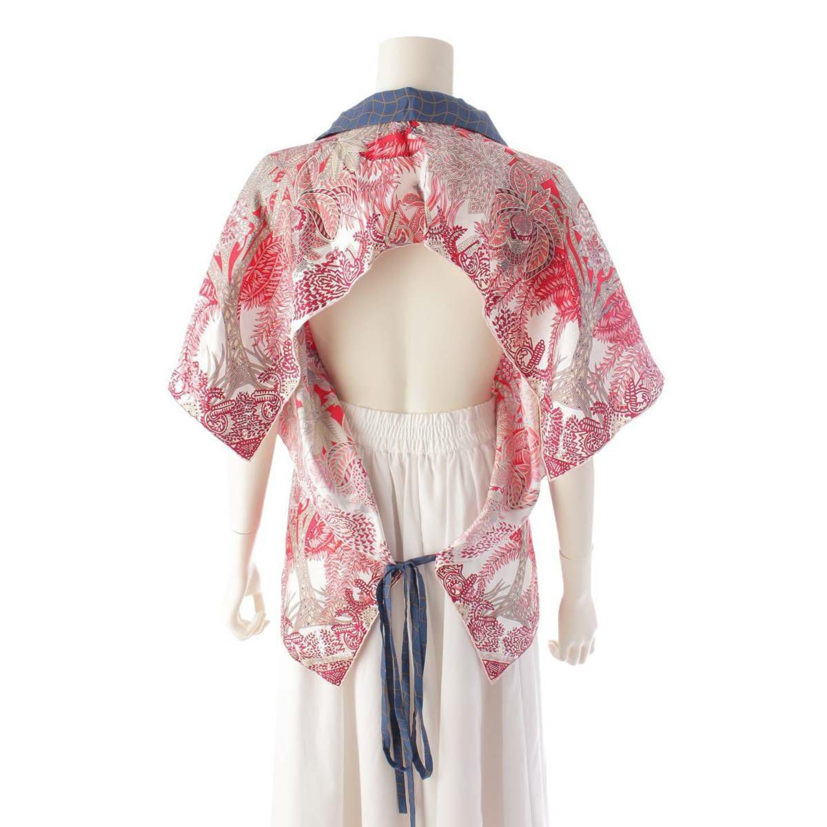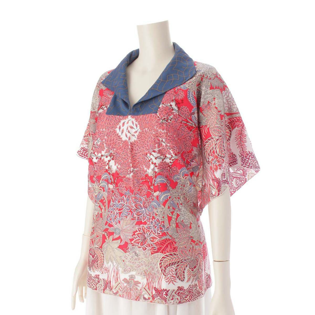 エルメス 花柄 フラワー 総柄 シルク ポンチョ バックオープン シャツ トップス レッド
