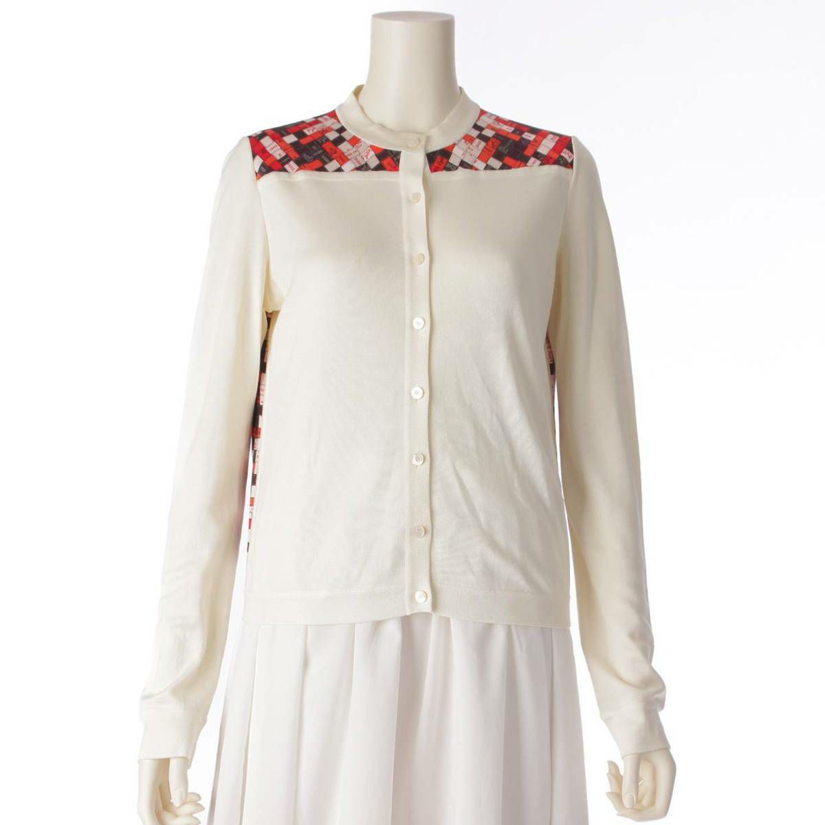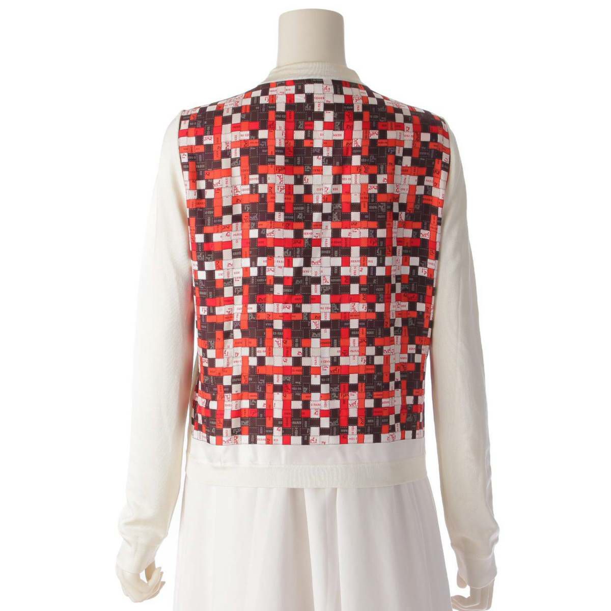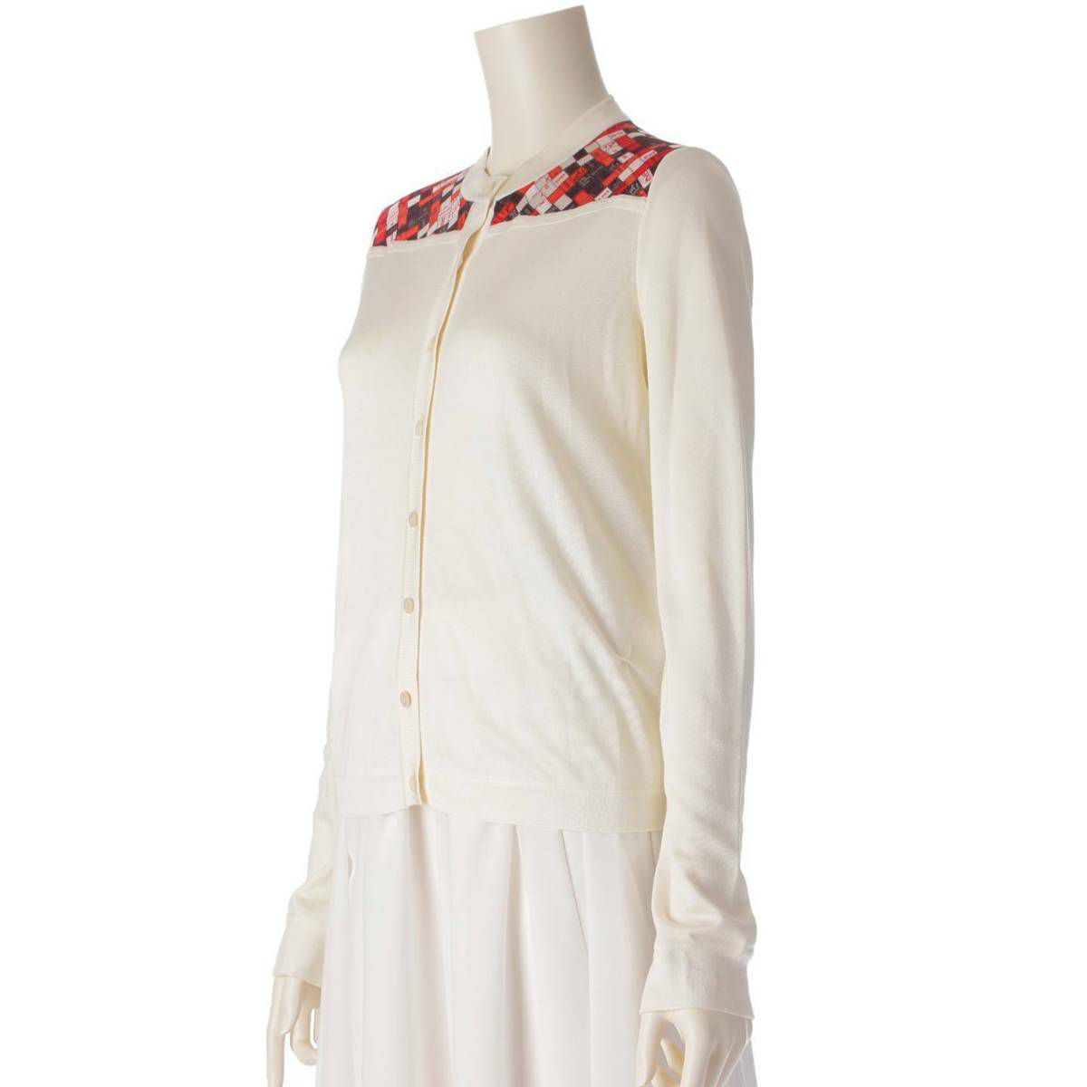 エルメス Hermes 19AW ボルデュック柄 ツイルレーヌ シルク カーディガン ホワイト×レッド 34