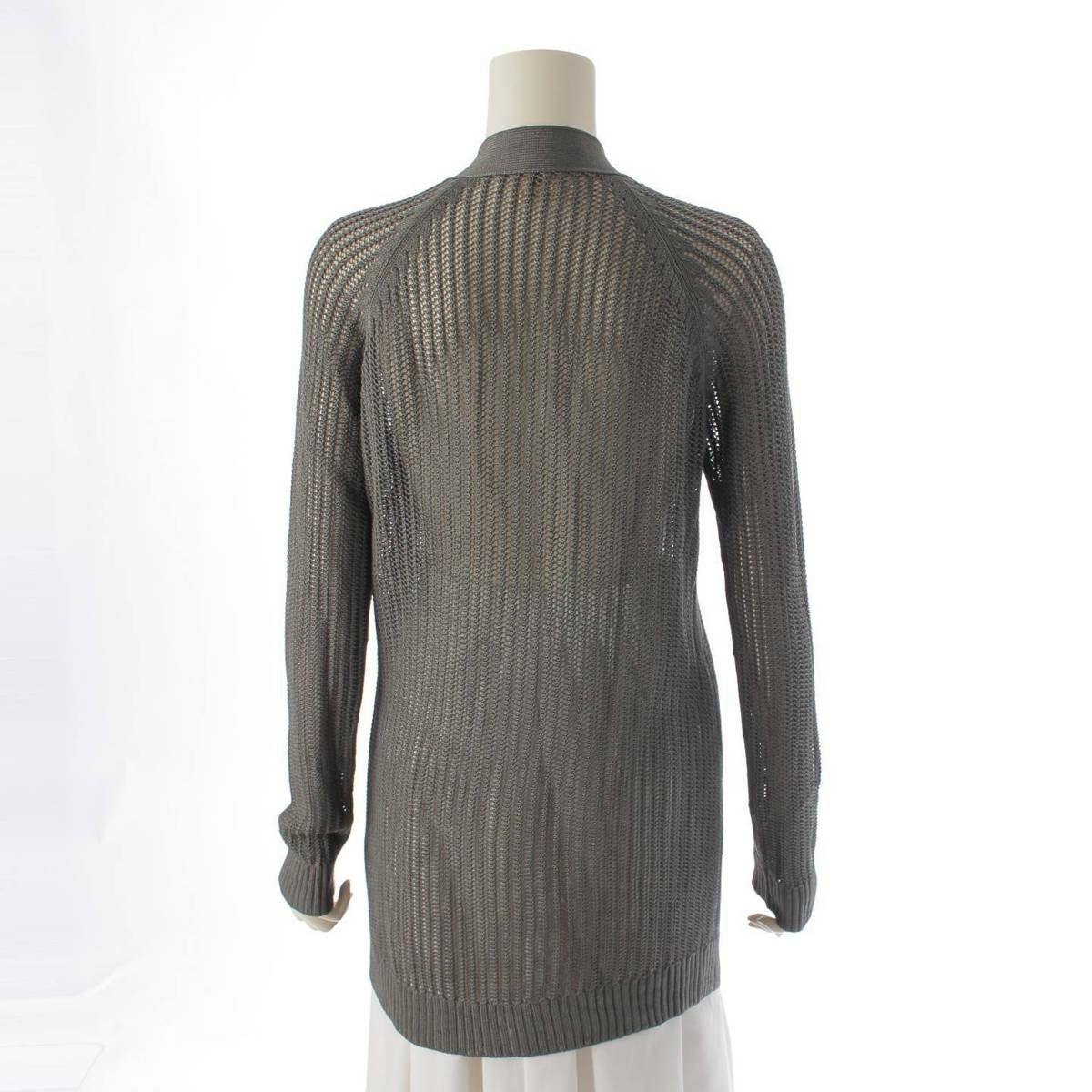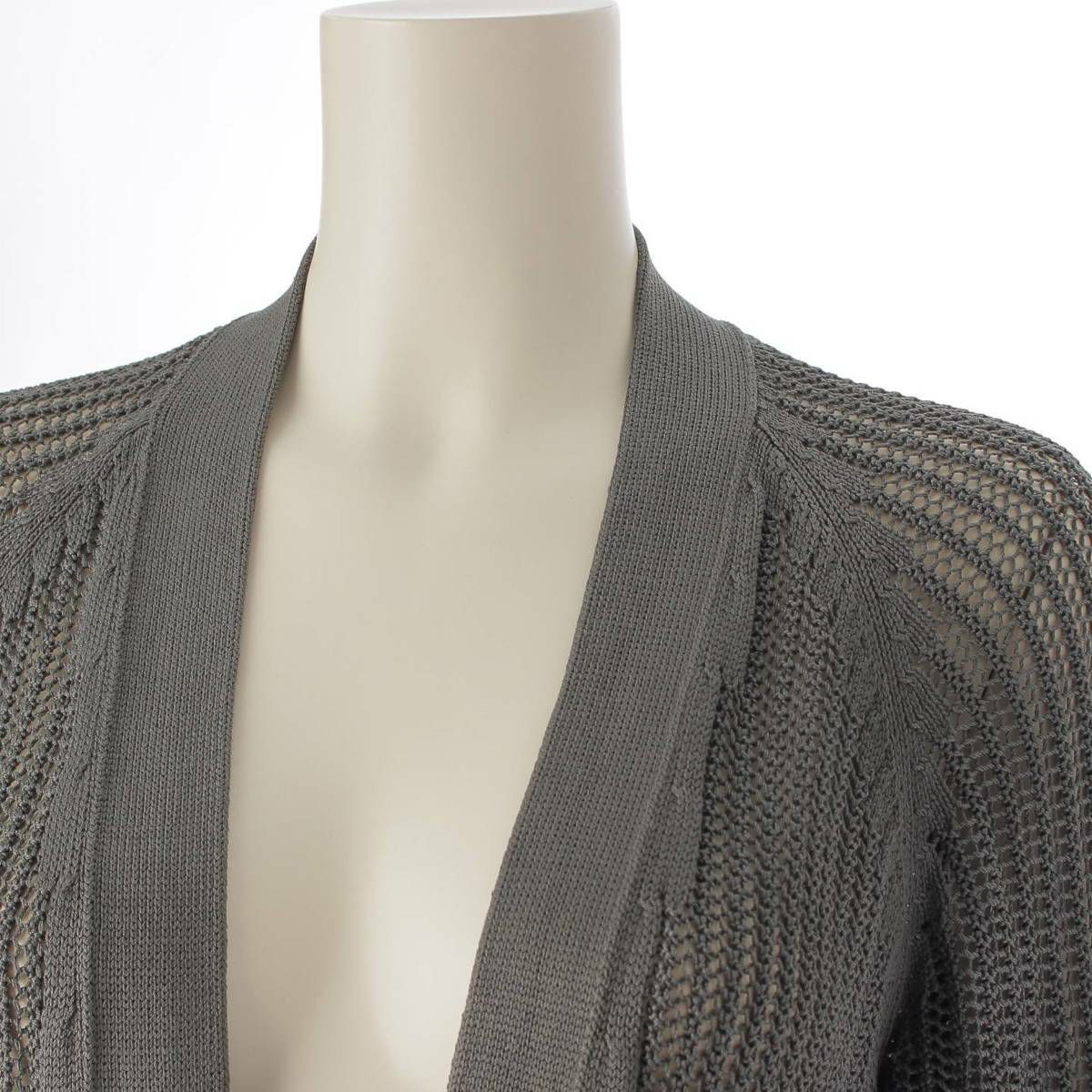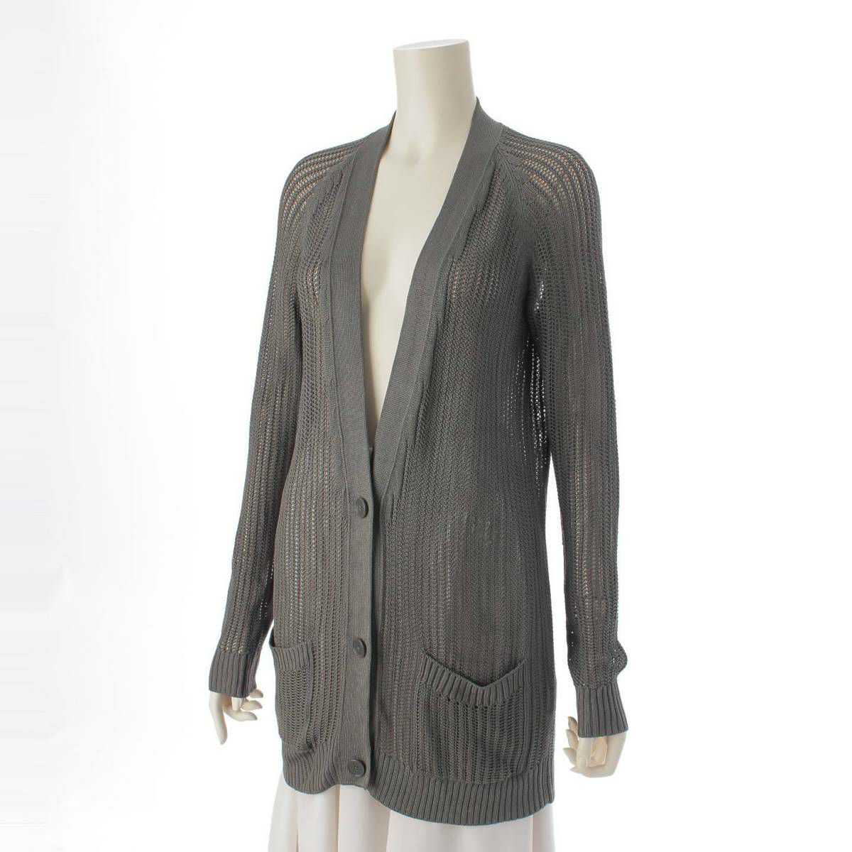 エルメス Hermes シルク100% 透かし編みニット Vネック カーディガン トップス モスグリーン 38