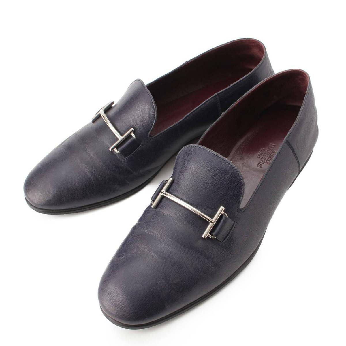 エルメス メンズ SAGA ゴートスキン H金具 ローファー 182301ZH ネイビー 39 1/2