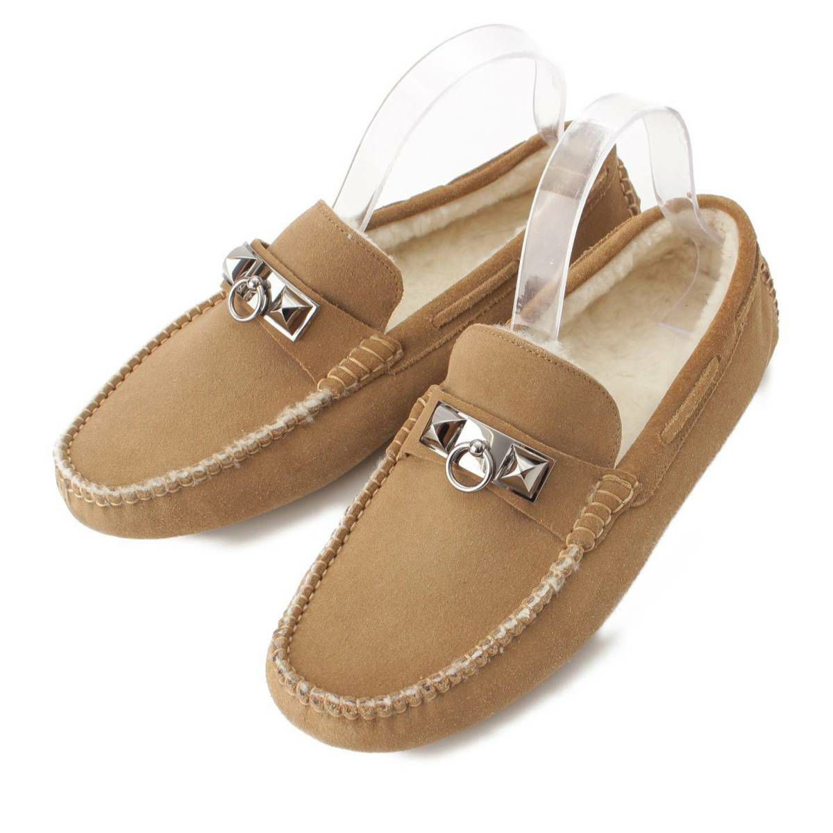 エルメス Hermes メンズ アーヴィング メドール スエード ボア ドライビングシューズ ベージュ 391/2